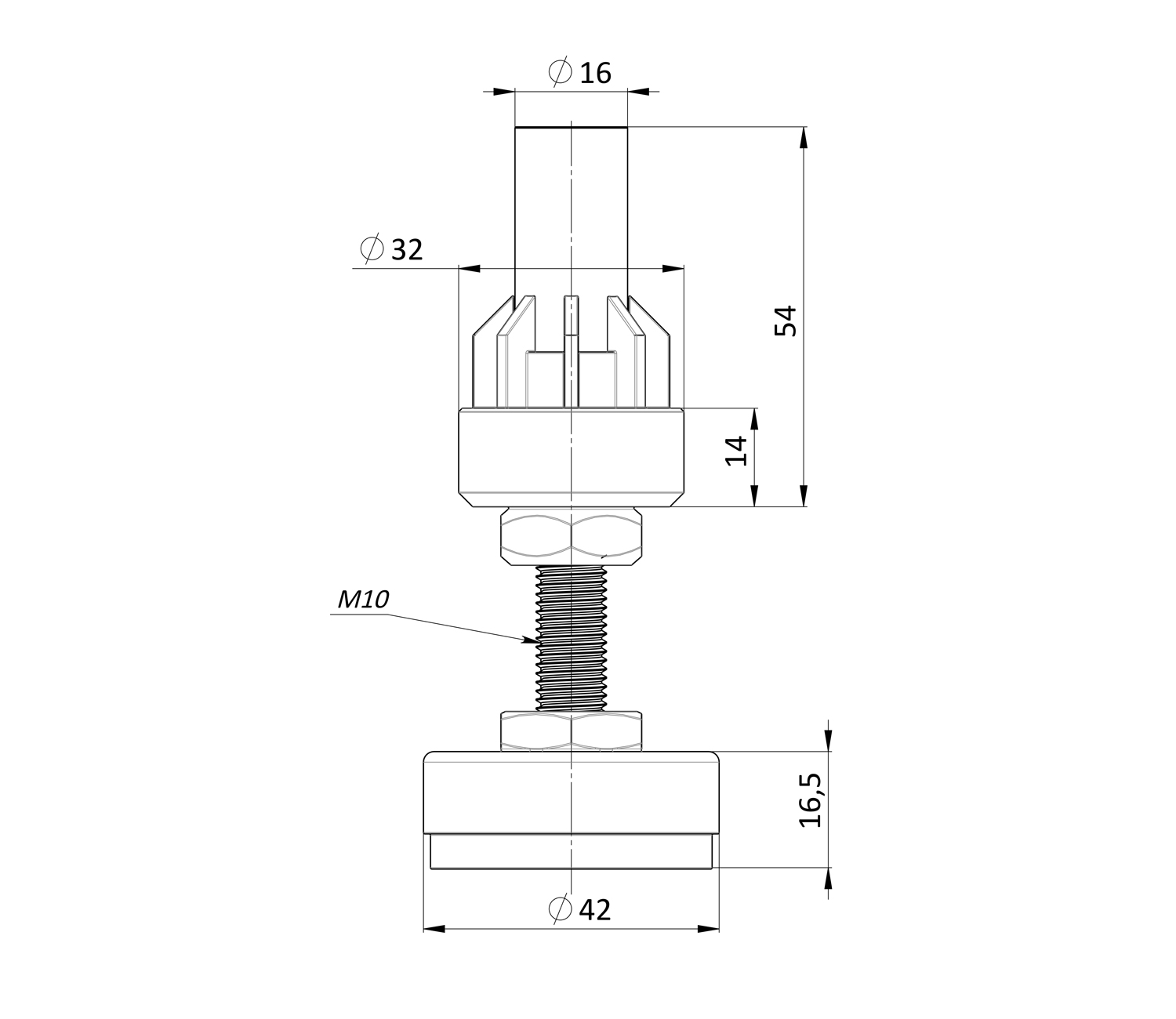 Комплектуется регулировочной шестигранной гайкой, выполняющую функцию стопора.