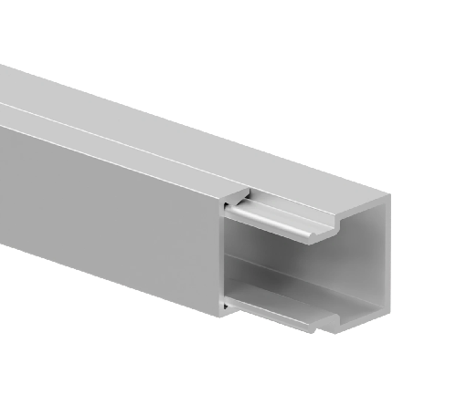 Комплектация лотка включает в себя основание и крышку, специальная конструкция замка исключает возможность повреждения кабелей. При монтаже, основание кабельного лотка крепится на несущей плоскости, после чего внутрь укладываются провода, поверх короб закрывается крышкой.