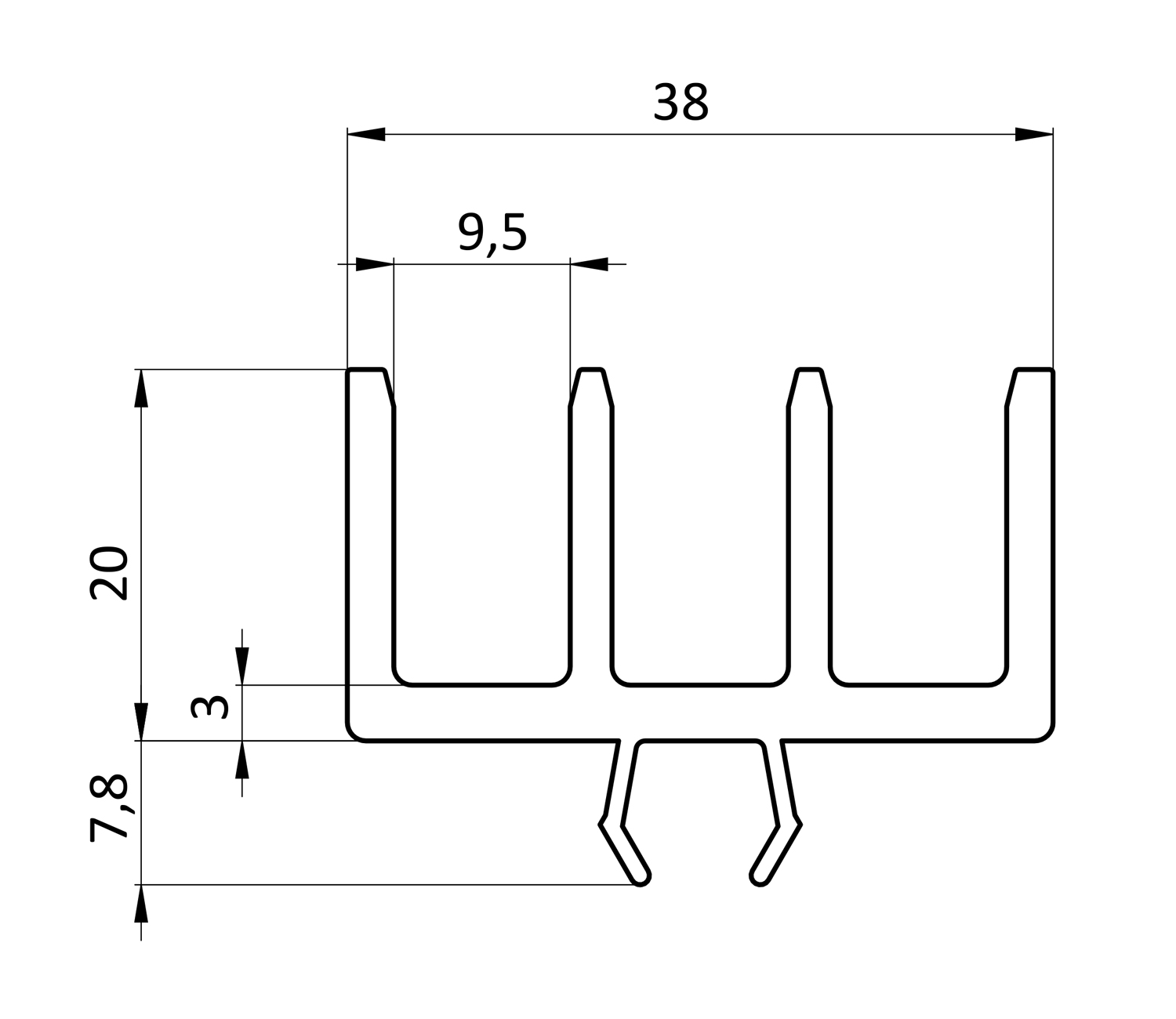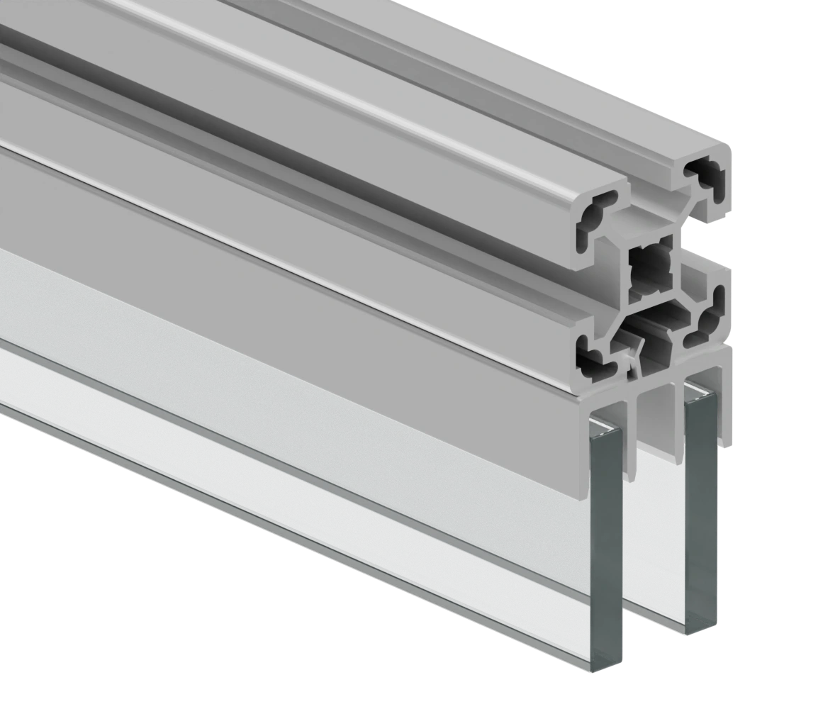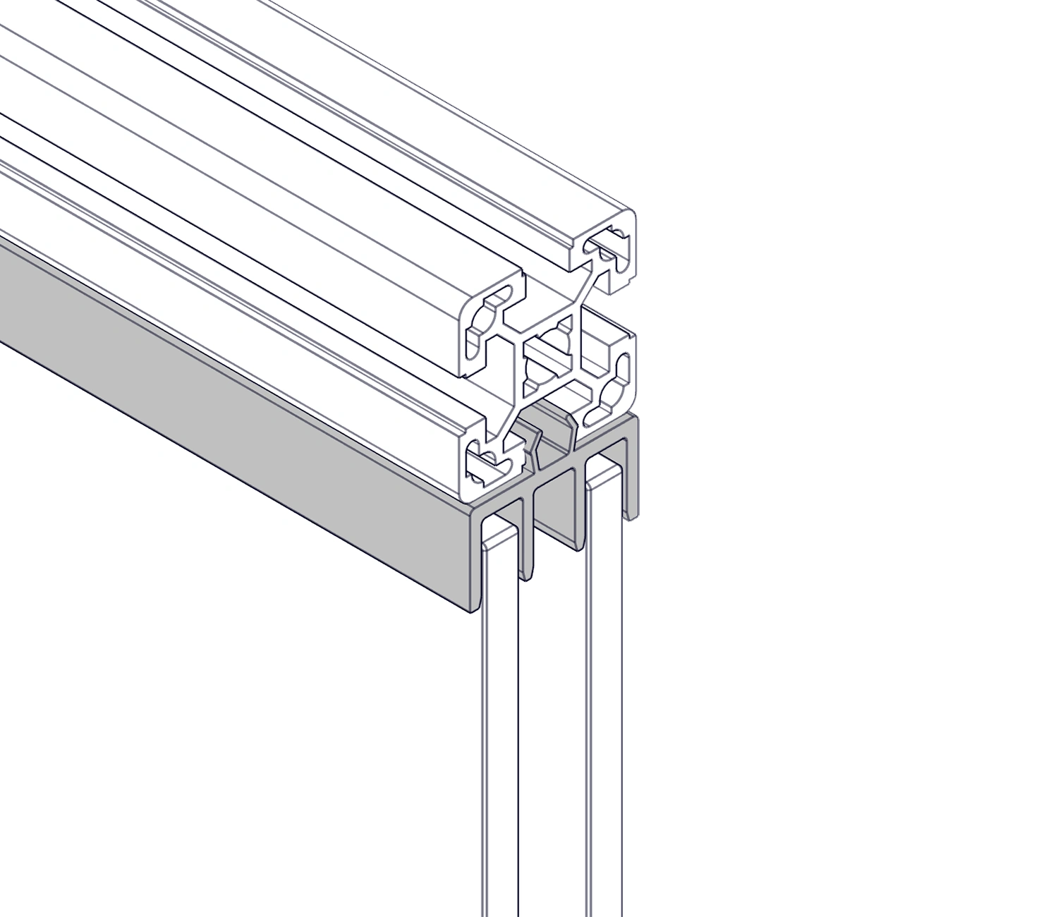 Профиль используется в изготовлении раздвижных дверей. Крепится к профилям стоек и подходят для легких раздвижных дверей.