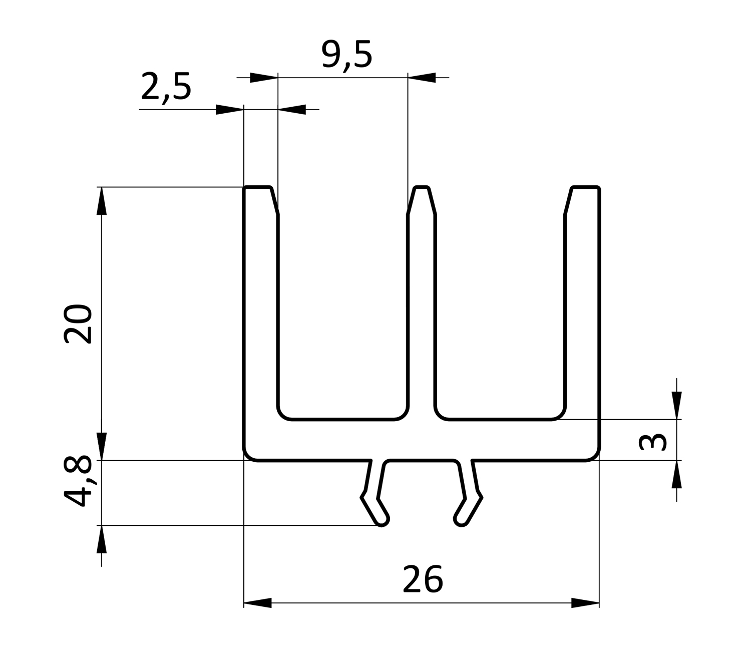 Профиль для раздвижной двери верхний паз 8 (3м)Профиль для раздвижной двери верхний паз 8 (3м)
