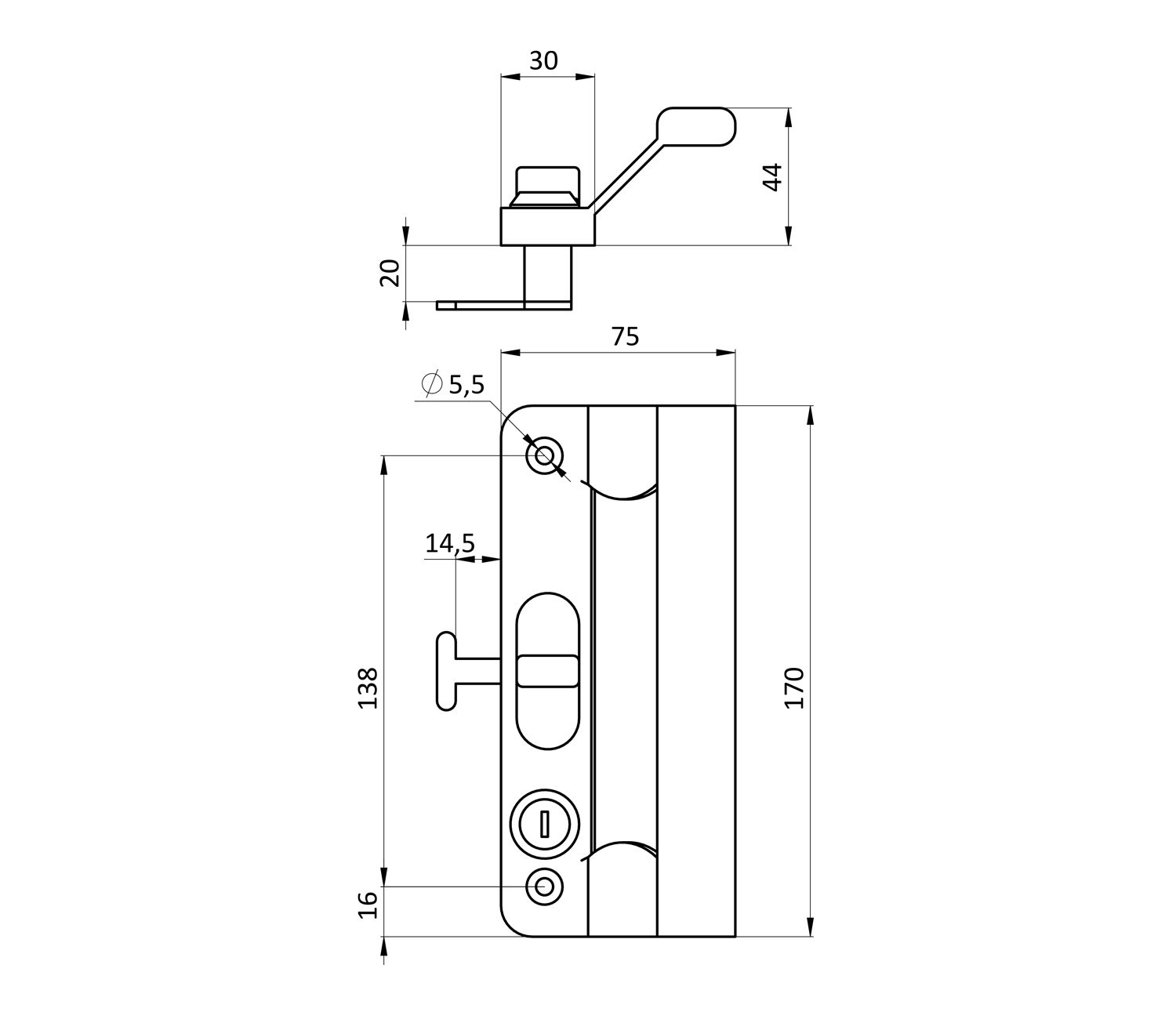Замок для раздвижной двери, серия 40, правыйЗамок для раздвижной двери, серия 40, правый