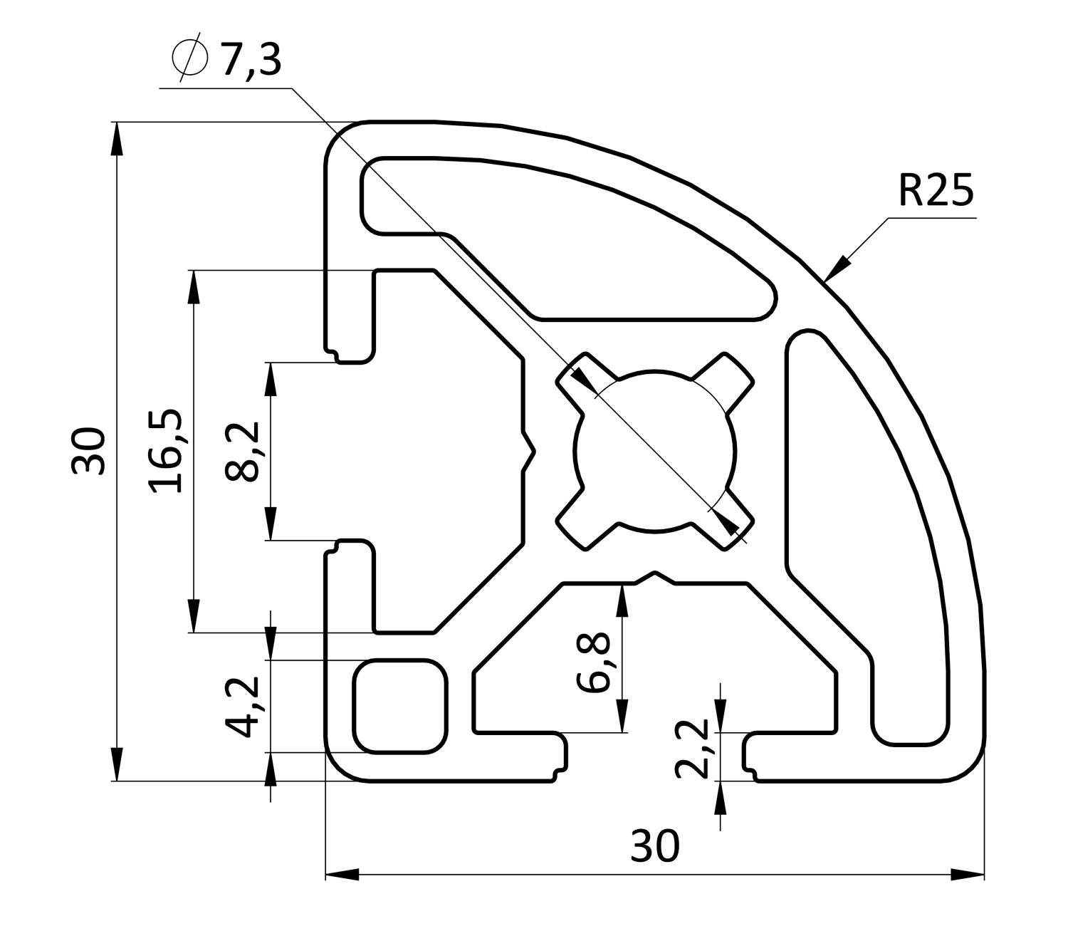 Алюминиевый конструкционный профиль 30х30R анодированныйАлюминиевый конструкционный профиль 30х30R анодированный