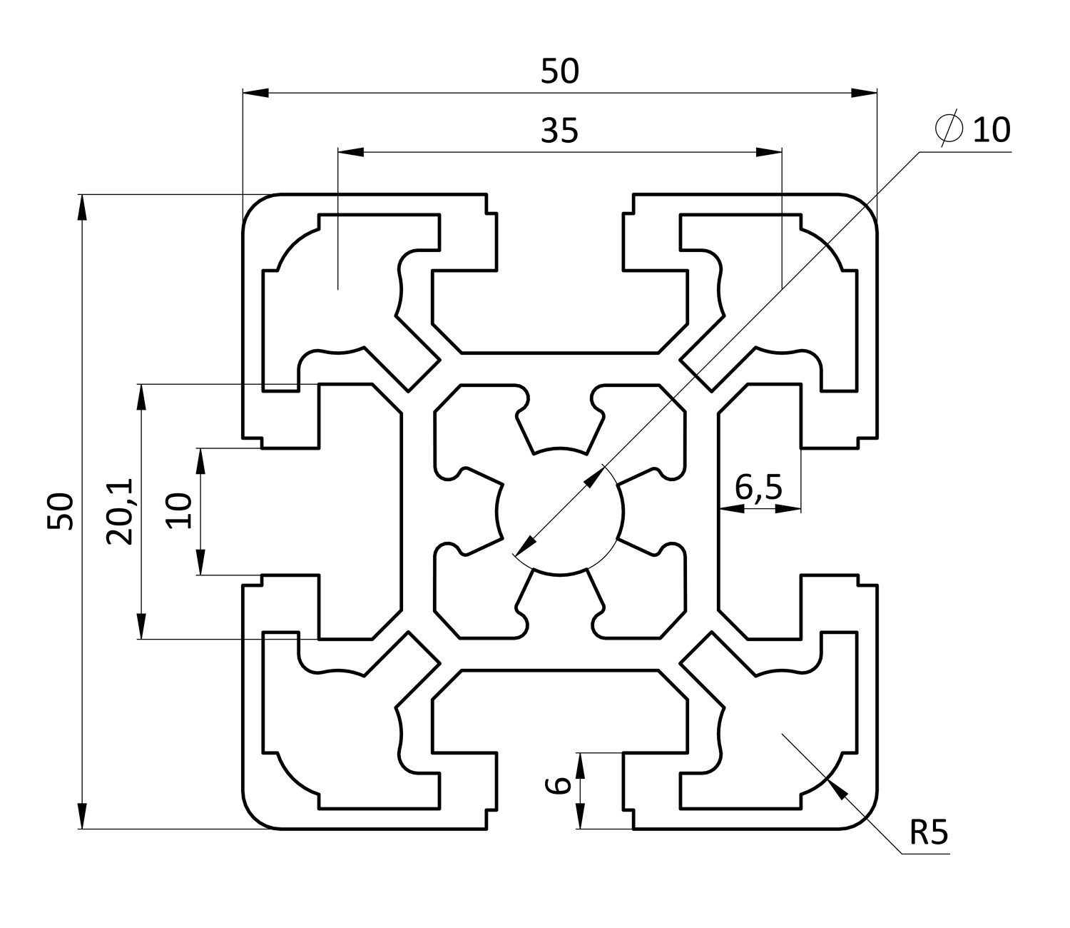 Алюминиевый конструкционный профиль 50х50 анодированныйАлюминиевый конструкционный профиль 50х50 анодированный