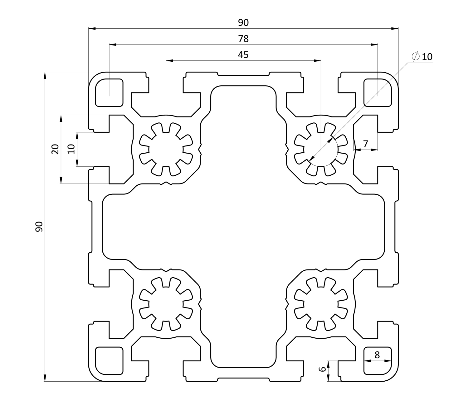 Конструкционный профиль Алюмика 90×90 анодированный — выбор профессионалов для создания промышленного оборудования, стендов, мебели, ограждений и автоматизированных систем.