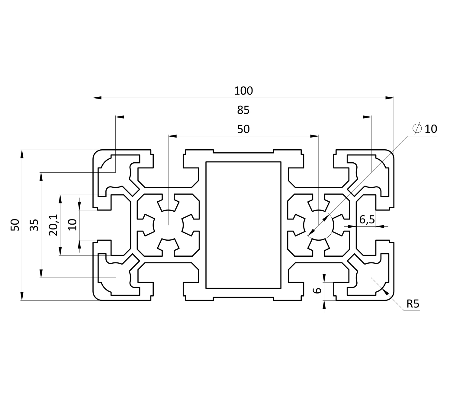Конструкционный профиль Алюмика 50x100 без покрытия — выбор профессионалов для создания промышленного оборудования, стендов, мебели, ограждений и автоматизированных систем.