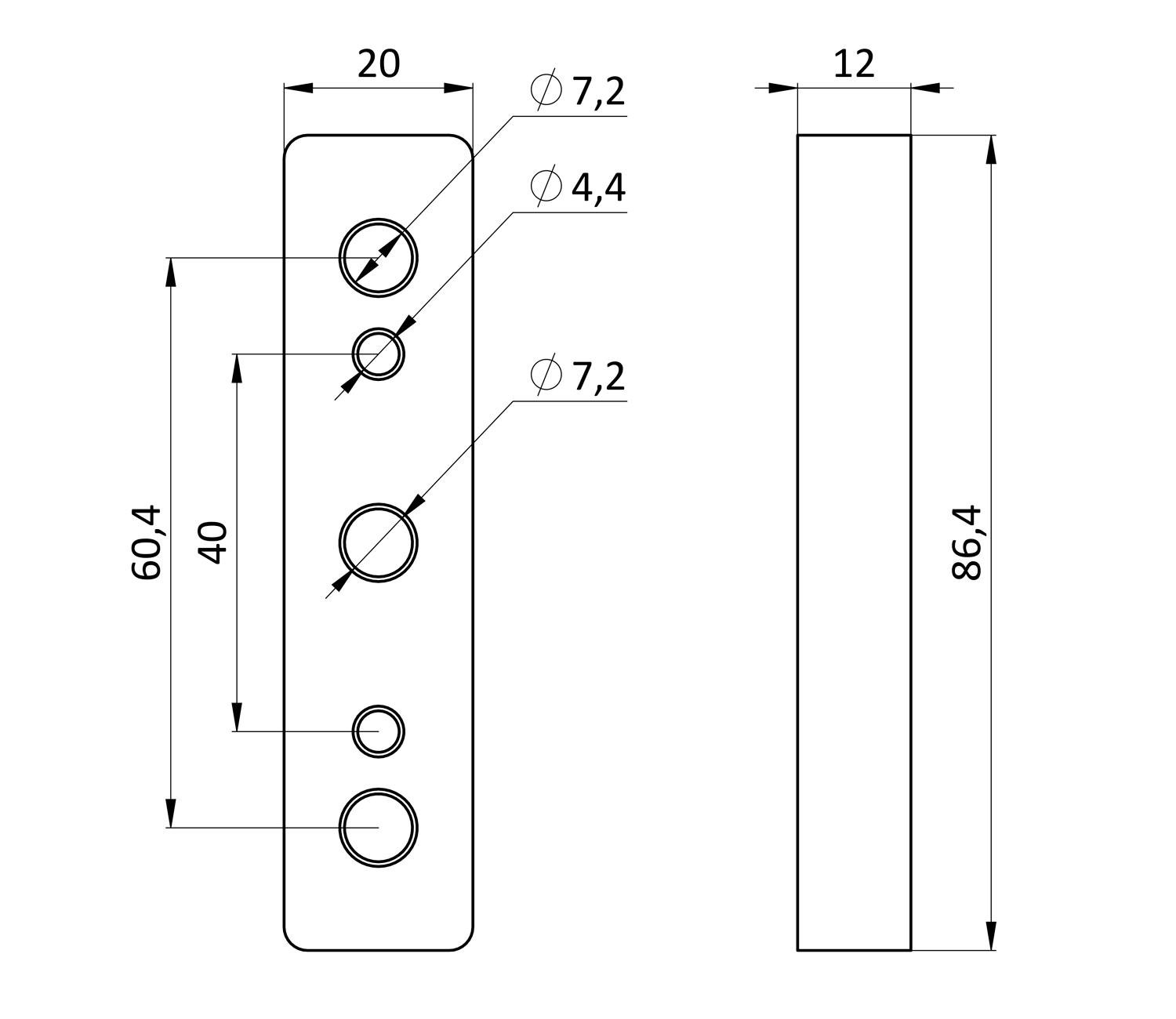Дистанционный блок 20х86 предназначен для установки на портальную пластину, позволяет увеличить высоту конструкции на 12 мм, чтобы проложить компоненты трансмиссии, такие как ременная передача или резьбовой стержень, под портальной пластиной