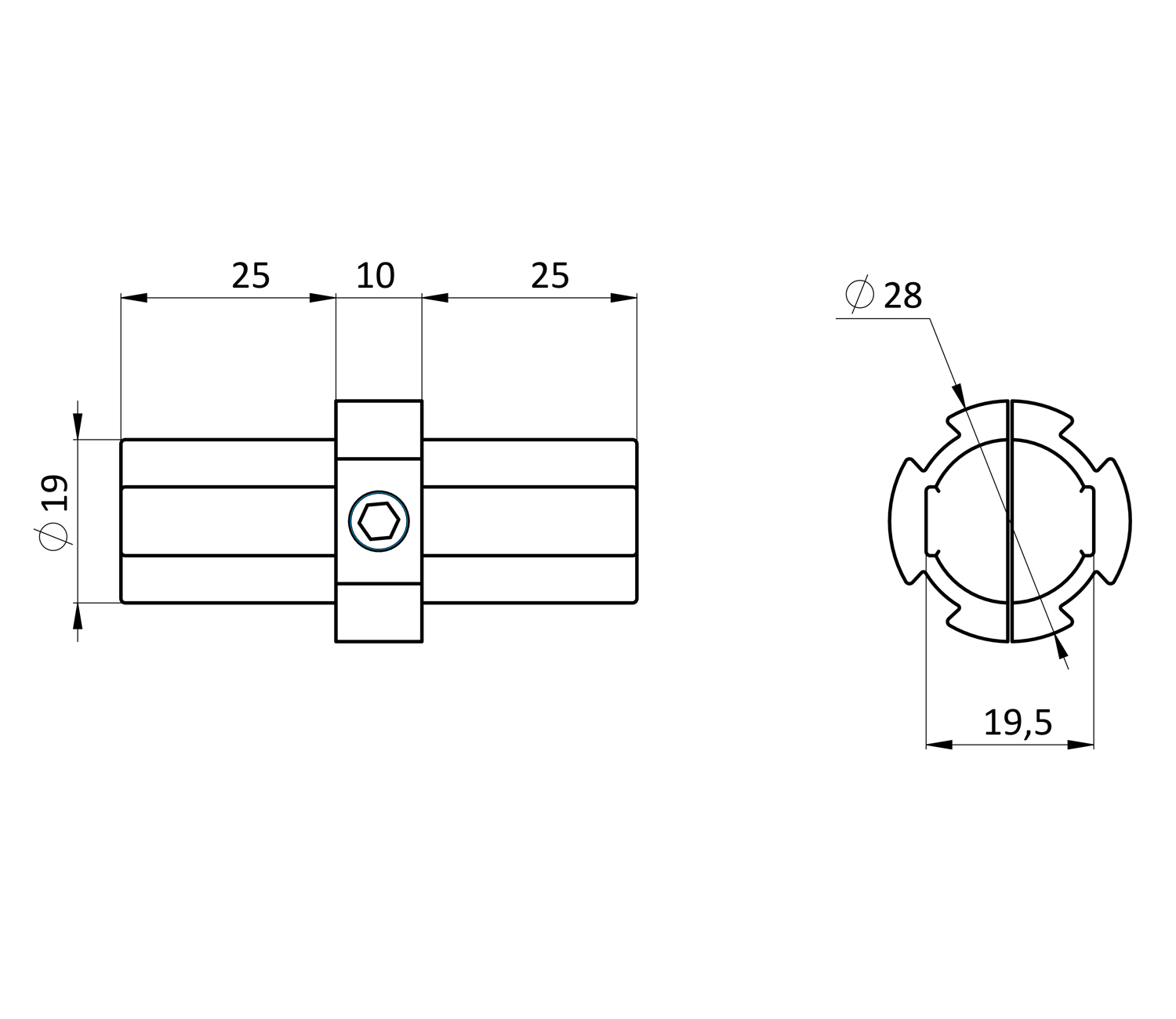 L-соединитель продольный D28L-соединитель продольный D28