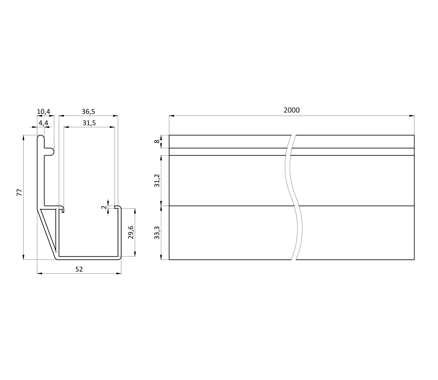 Стандартная длина, мм: 2000