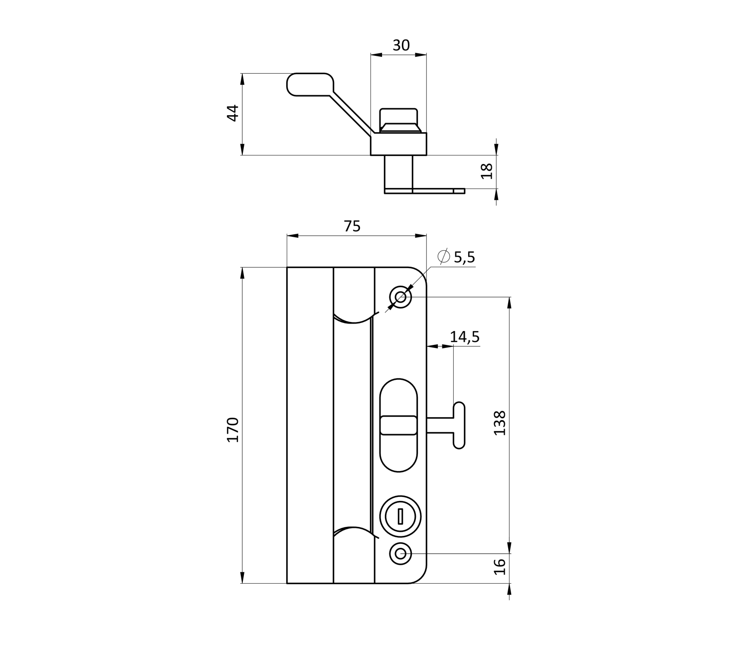 Замок для раздвижной двери, серия 30, левыйЗамок для раздвижной двери, серия 30, левый
