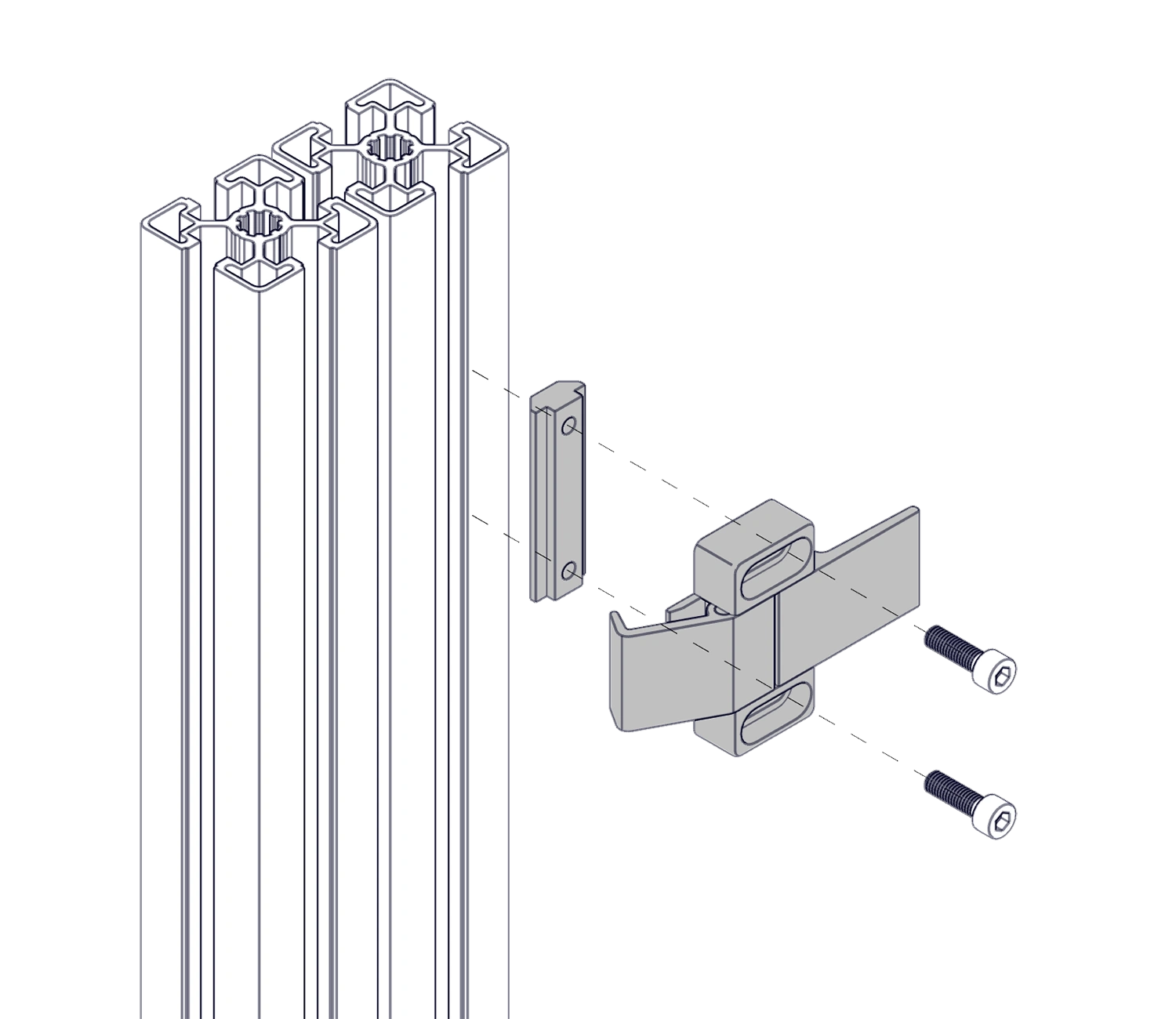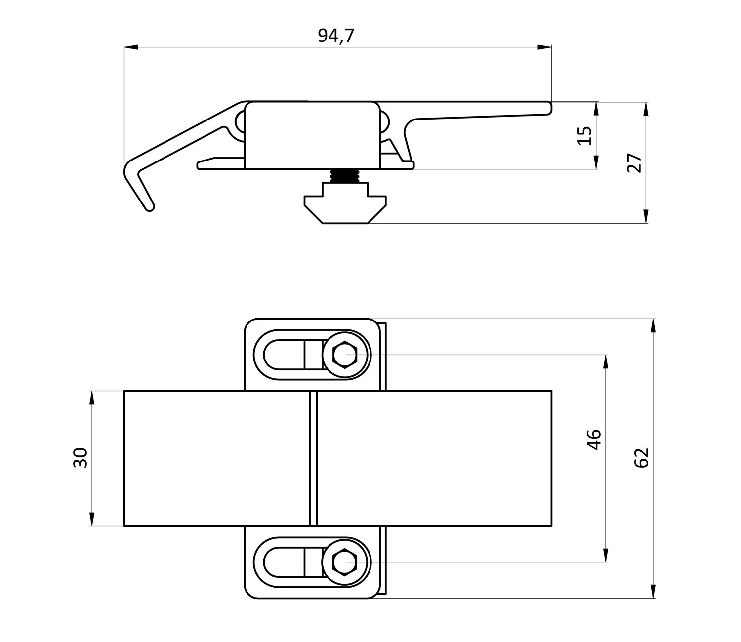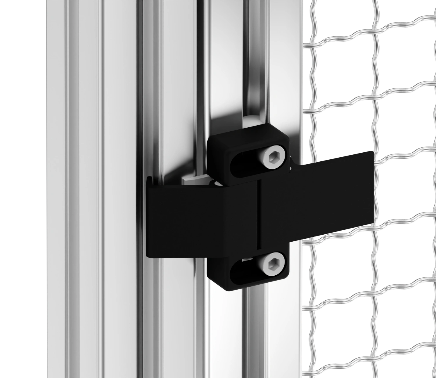 Ручка замок - элемент промышленной фурнитуры, используемый в системе алюминиевых промышленных ограждений на основе конструкционного алюминиевого профиля. Ручка замок применяется для фиксации открывающихся створок дверей и лючков. Подходит к 45 серии