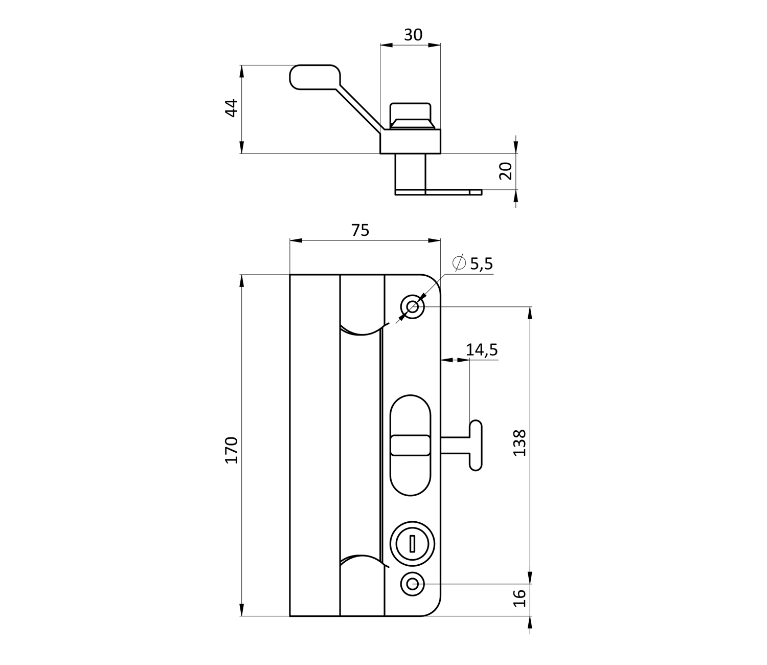 Замок для раздвижной двери, серия 40, левыйЗамок для раздвижной двери, серия 40, левый