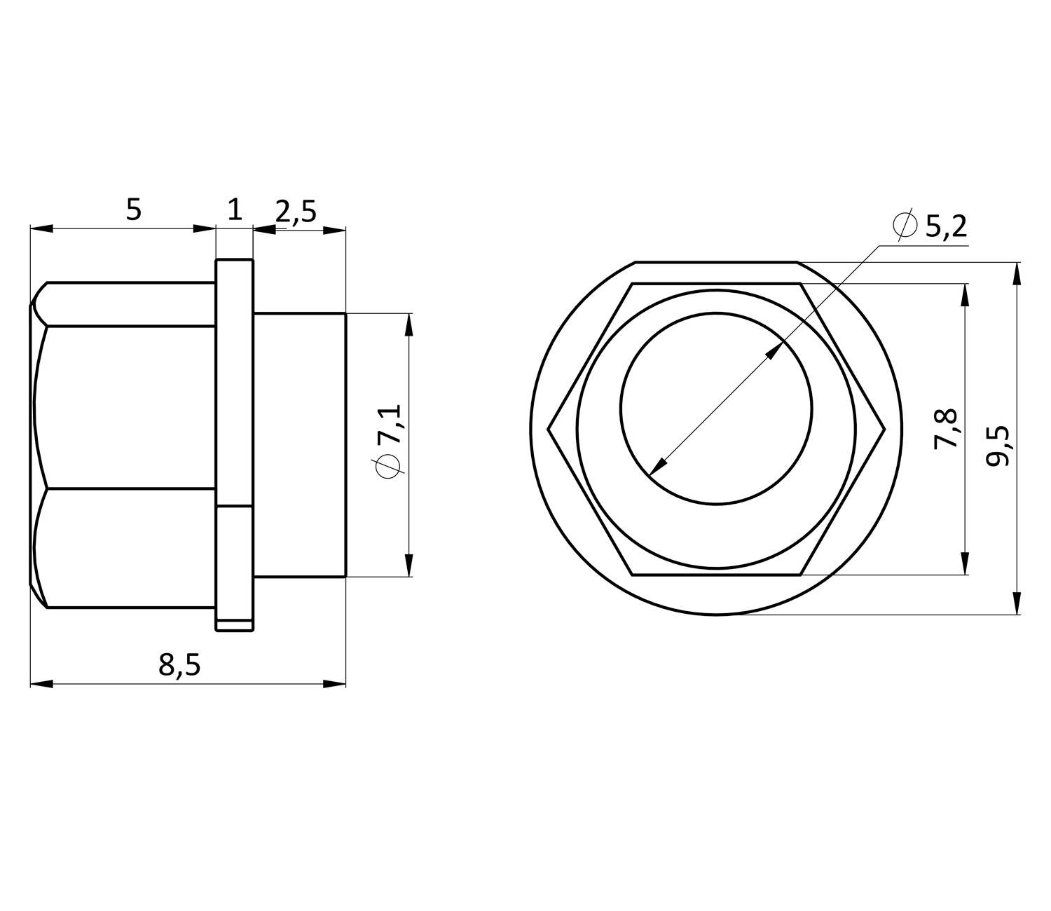 Мини эксцентрик 6 мм S, для винта М5Мини эксцентрик 6 мм S, для винта М5