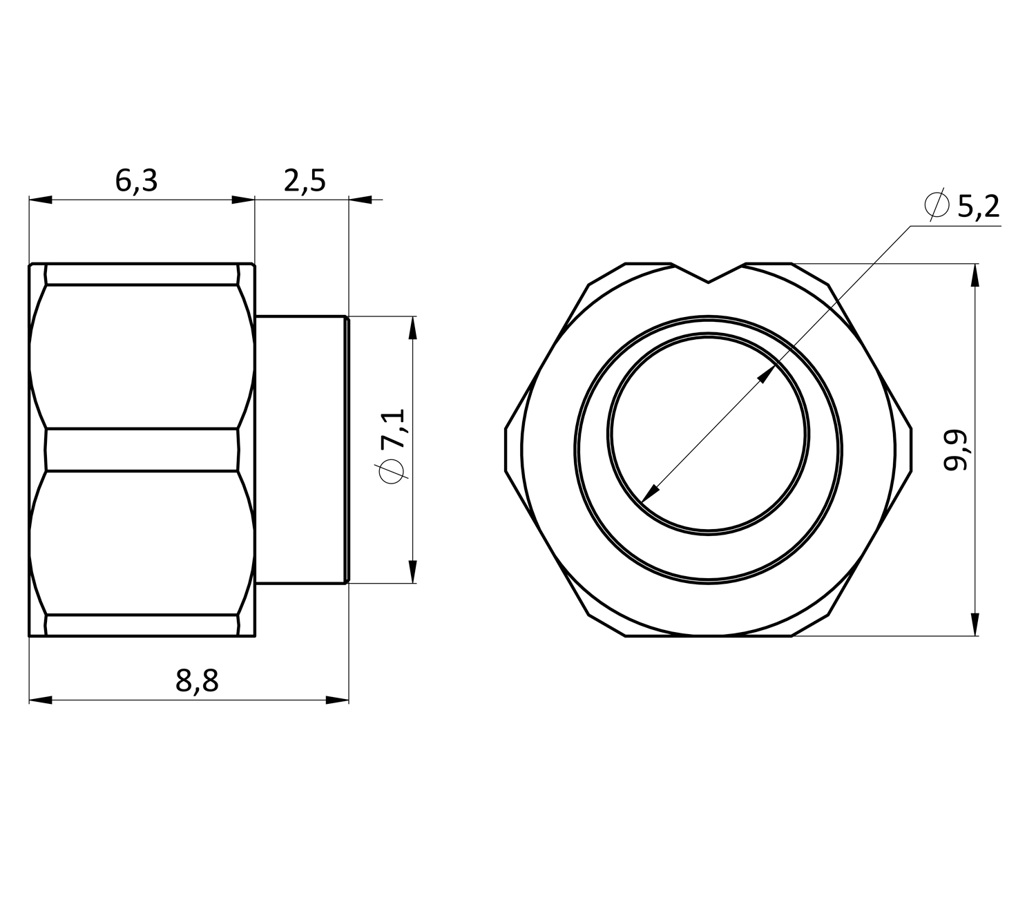 Стандартный эксцентрик 6,35 мм C, для винта М5Стандартный эксцентрик 6,35 мм C, для винта М5