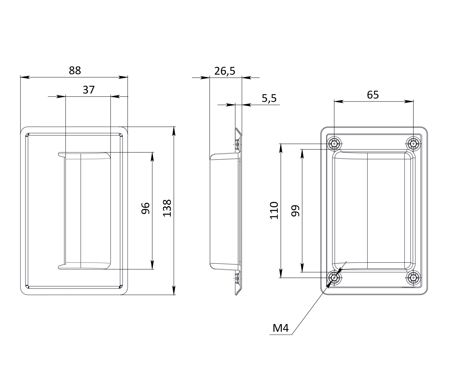 Для крепления ручки потребуется 4 винта 7380 М4 (не входят в комплект), глубина резьбовых отверстий в ручки 6 мм, длина винта подбирается в зависимости от толщины материала