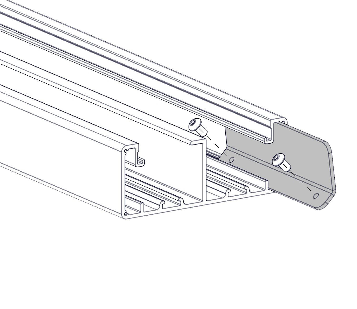 Внутри кабель-канала крепится двумя винтами с п/к головкой и шестигранным углублением ISO 7380 М4х8, которые входят в комплект.