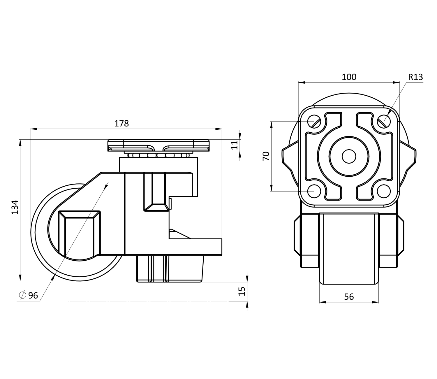Колесо самоустанавливающееся H 134 мм, D 96 мм, нагрузка до 1500 кгКолесо самоустанавливающееся H 134 мм, D 96 мм, нагрузка до 1500 кг