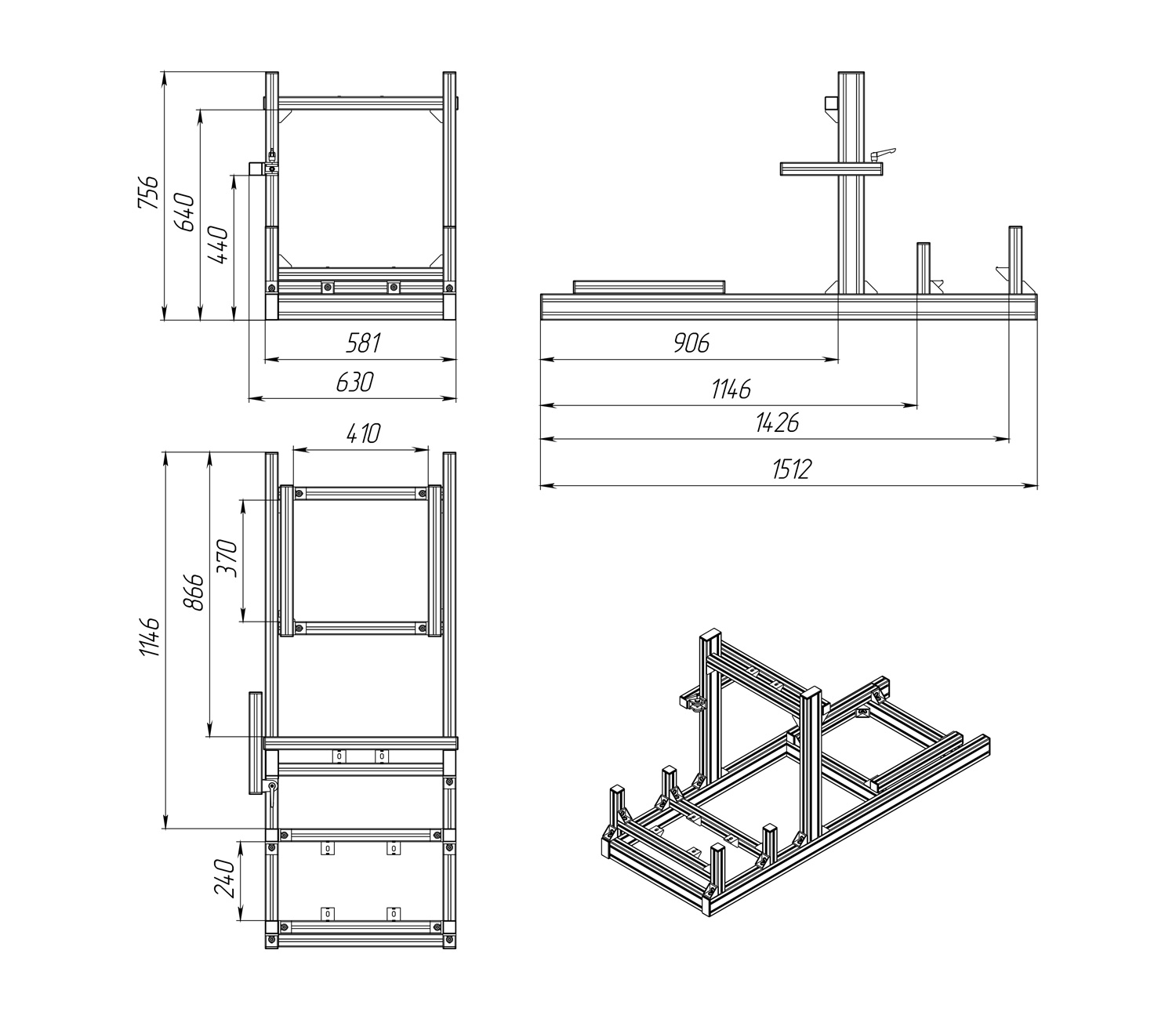 В комплект поставки входят: конструкционный алюминиевый профиль, уголки, т-болты, гайки и инструкции по сборке.