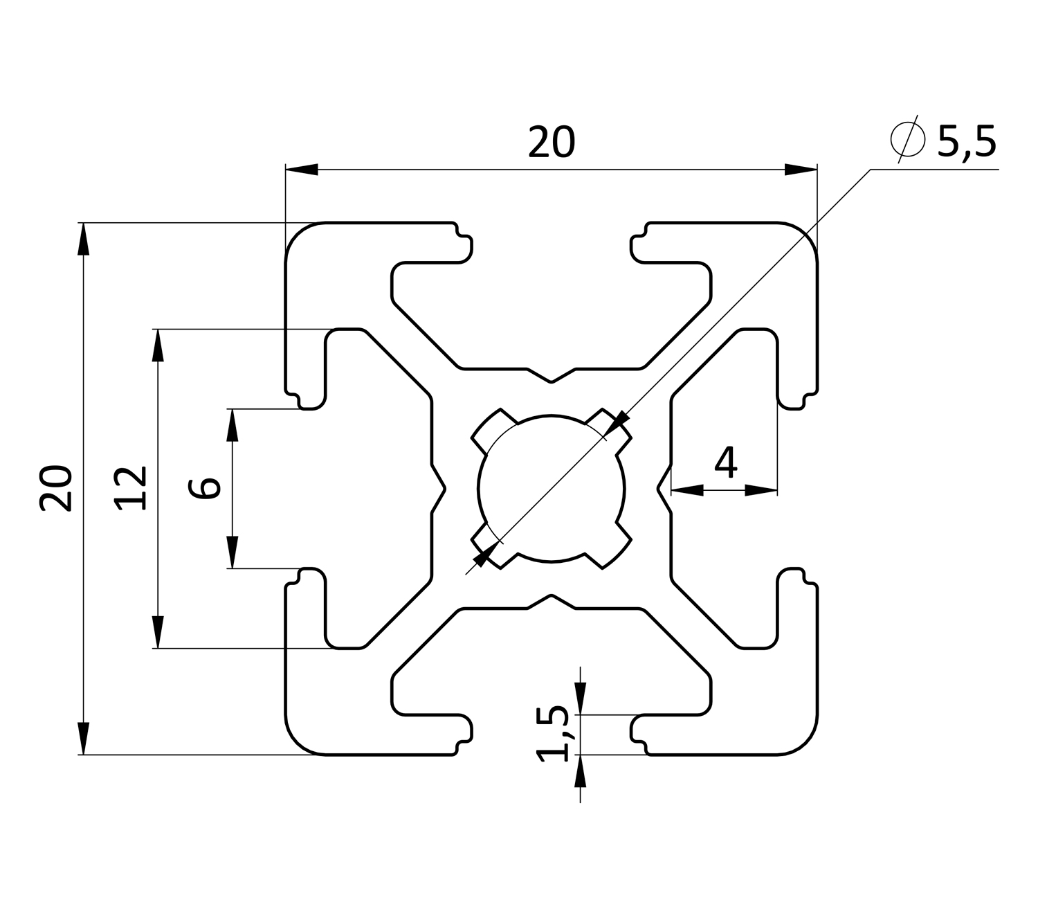 Сечение профиля, мм: 20х20