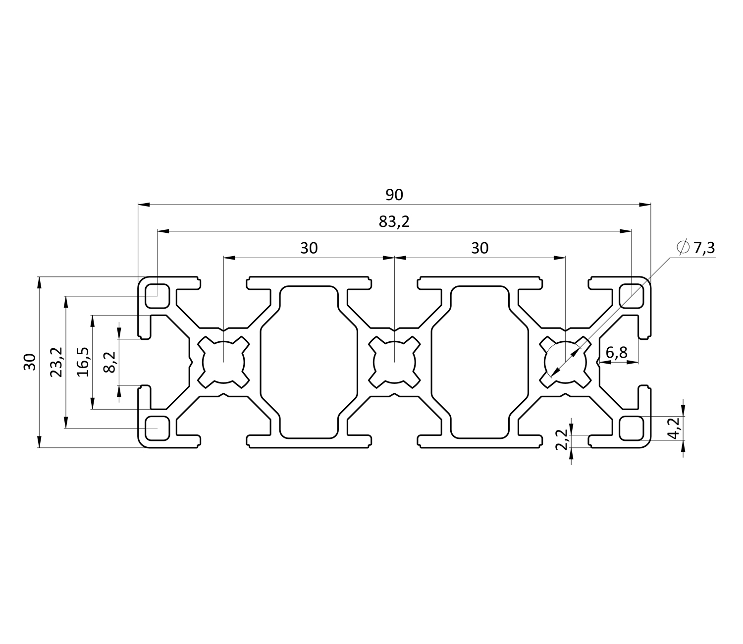 Алюминиевый конструкционный профиль 30x90 без покрытияАлюминиевый конструкционный профиль 30x90 без покрытия
