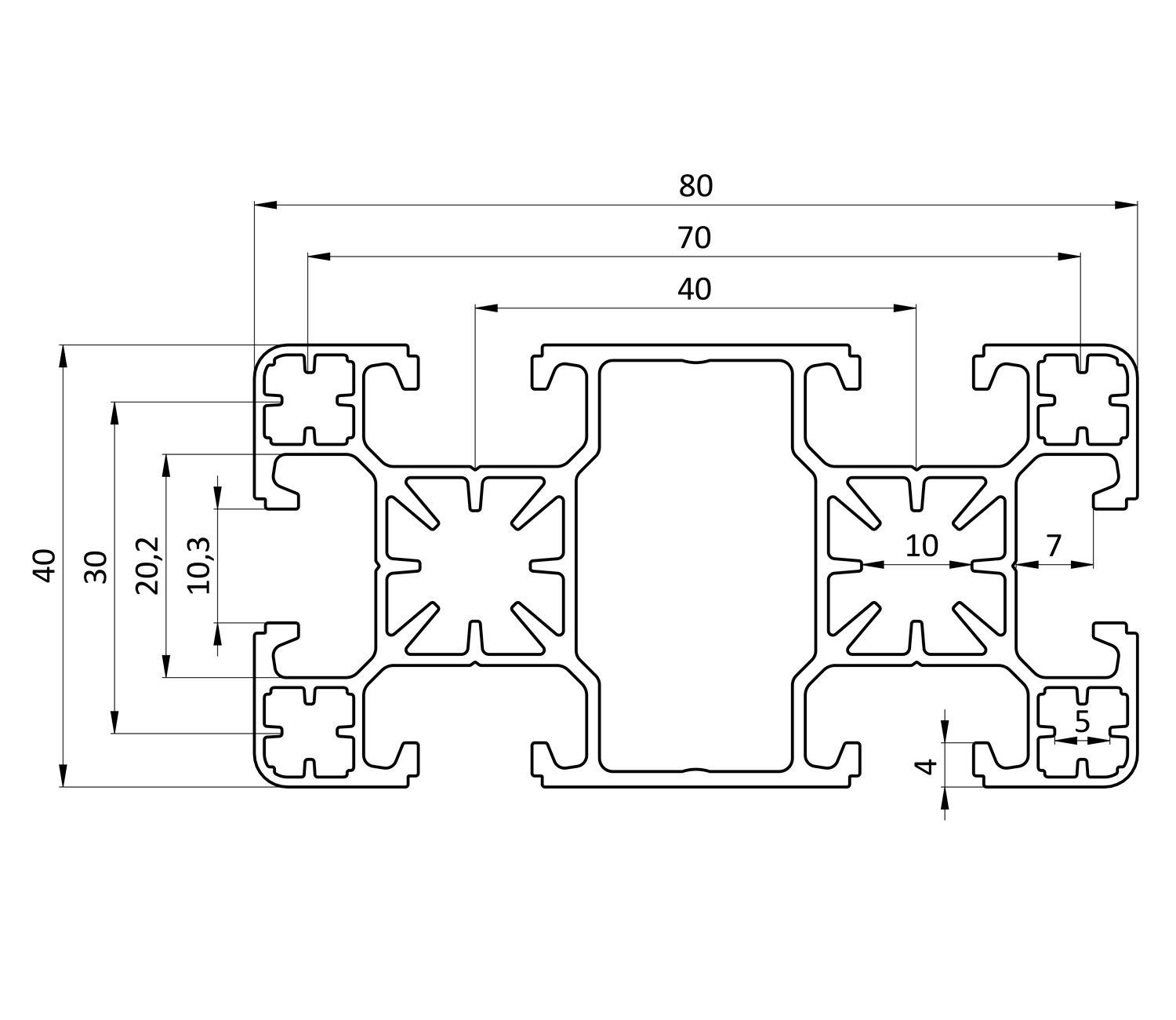 Алюминиевый конструкционный профиль 40х80L без покрытияАлюминиевый конструкционный профиль 40х80L без покрытия