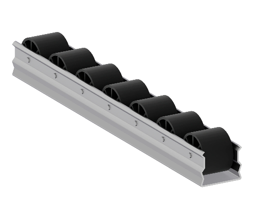 Роликовые стальные направляющие для конвейеров (рольганги) — элемент линейки конвейерной фурнитуры, используемой для создания гравитационных стеллажей и прочих конструкций предназначенных для процессов внутрипроизводственной логистики. Совместим с системой конструкционных алюминиевых профилей Alumica.