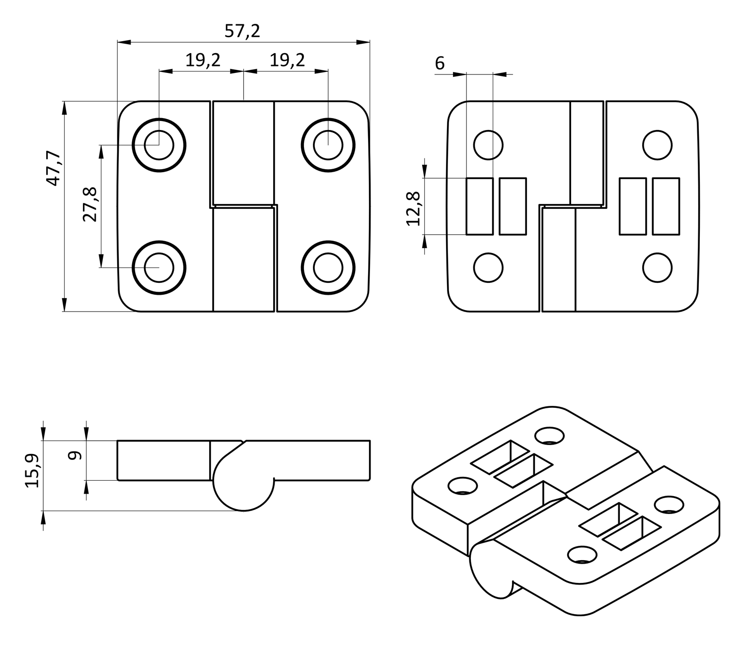 Дверная петля разъемная пластиковая 40х40 праваяДверная петля разъемная пластиковая 40х40 правая