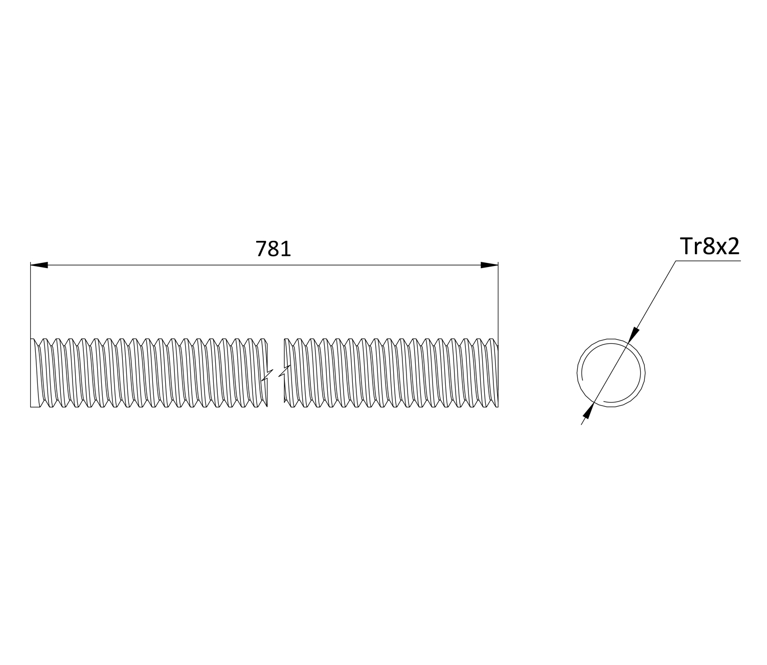 Трапецеидальный винт 8х781 мм, однозаходный используется для преобразования вращательного движения в линейное. Обеспечивает плавное и точное перемещение.