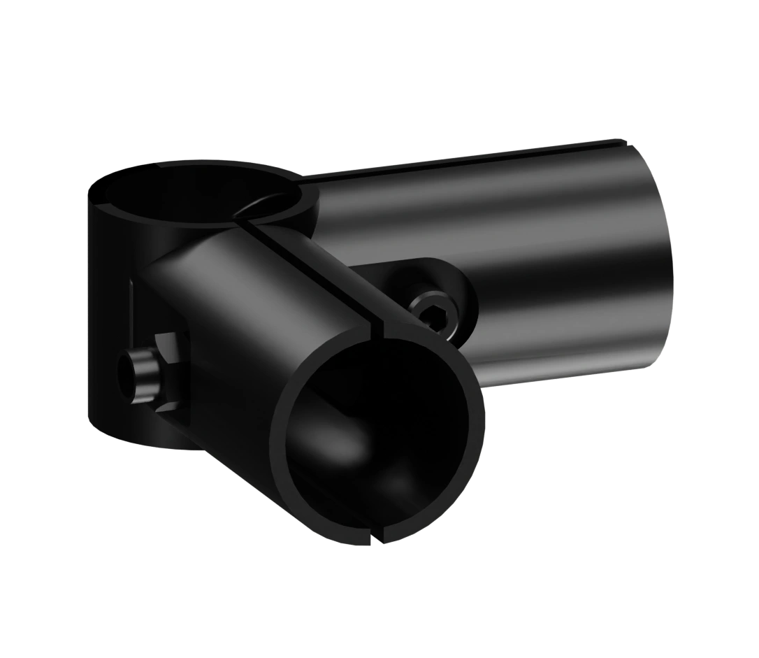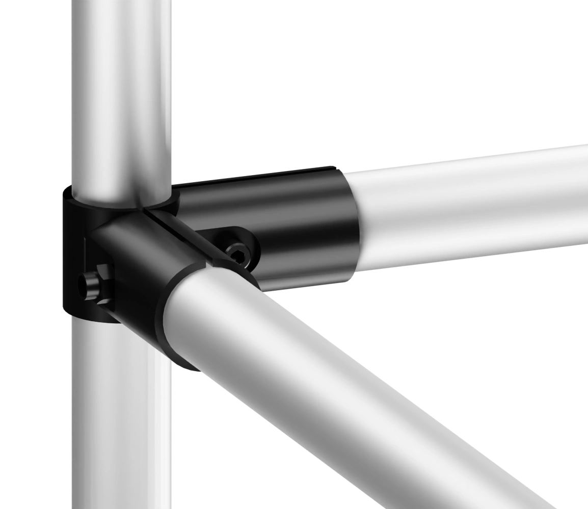 Кронштейн соединительный предназначен для трехстороннего соединения профилей. Используется совместно с алюминиевым трубным профилем D 28 мм в модульной трубной системе, которая представляет собой набор соединителей, роликовых направляющих (рольгангов) и других вспомогательных компонентов, позволяющих быстро изготовить специальные виды стационарного и мобильного оборудования и приспособлений, применимых на складе, сборочном производстве, таких как гравитационные стеллажи, тележки, рабочие столы и станции с возможностью их быстрой настройки, модификации.