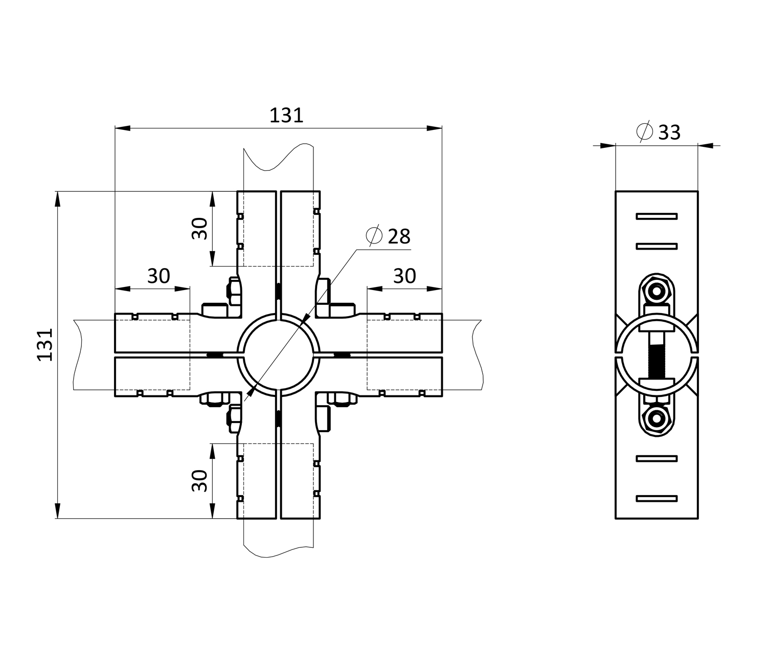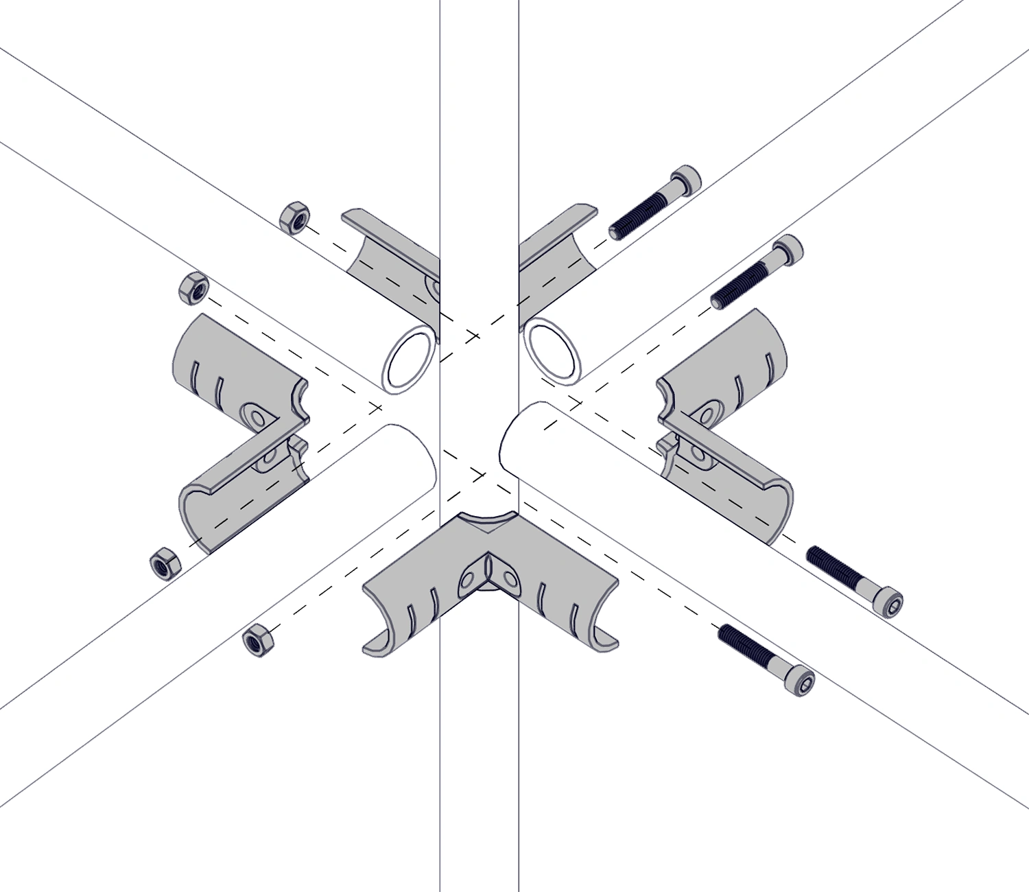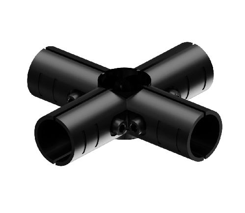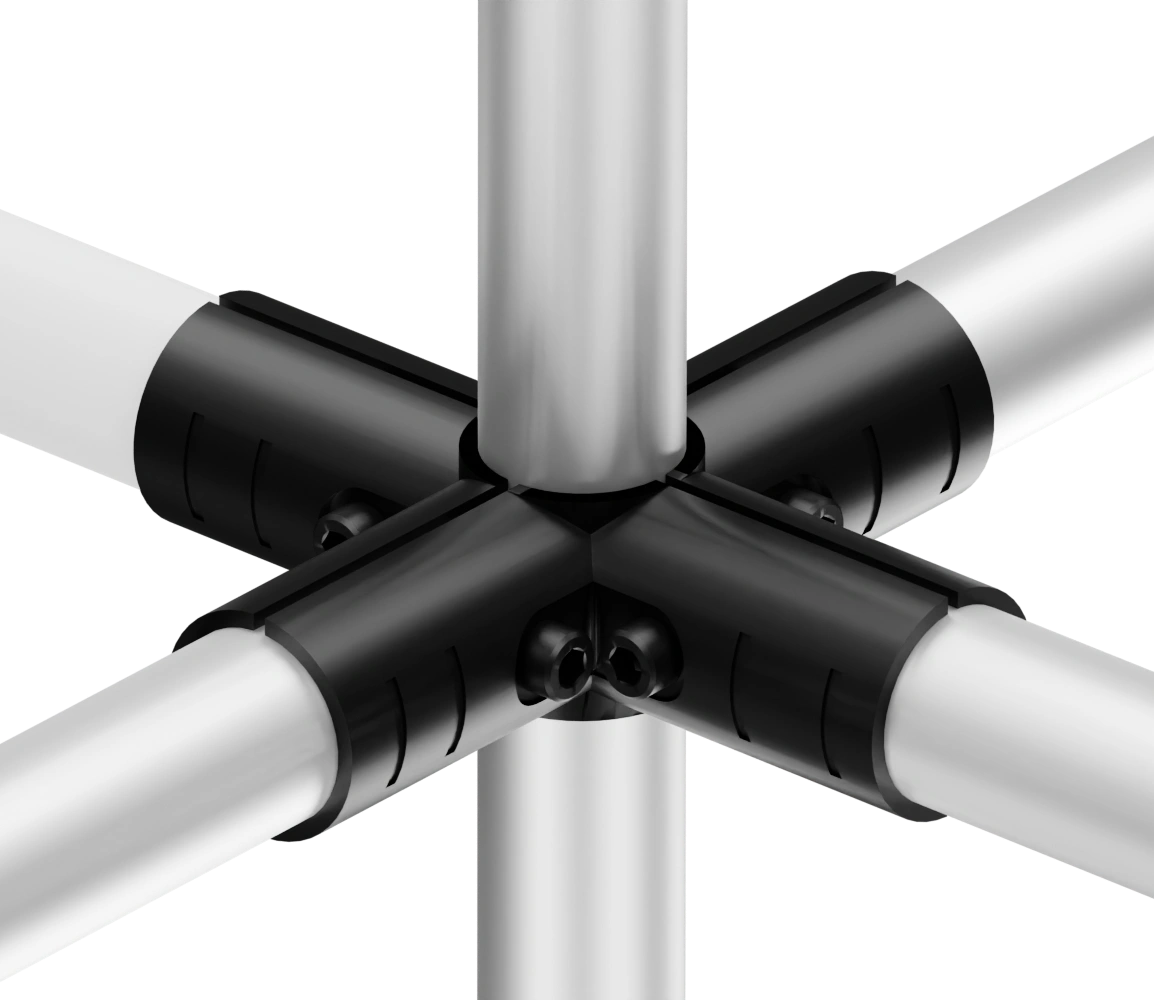 Используется совместно с алюминиевым трубным профилем D 28 мм в модульной трубной системе, которая представляет собой набор соединителей, роликовых направляющих (рольгангов) и других вспомогательных компонентов, позволяющих быстро изготовить специальные виды стационарного и мобильного оборудования и приспособлений, применимых на складе, сборочном производстве, таких как гравитационные стеллажи, тележки, рабочие столы и станции с возможностью их быстрой настройки, модификации.