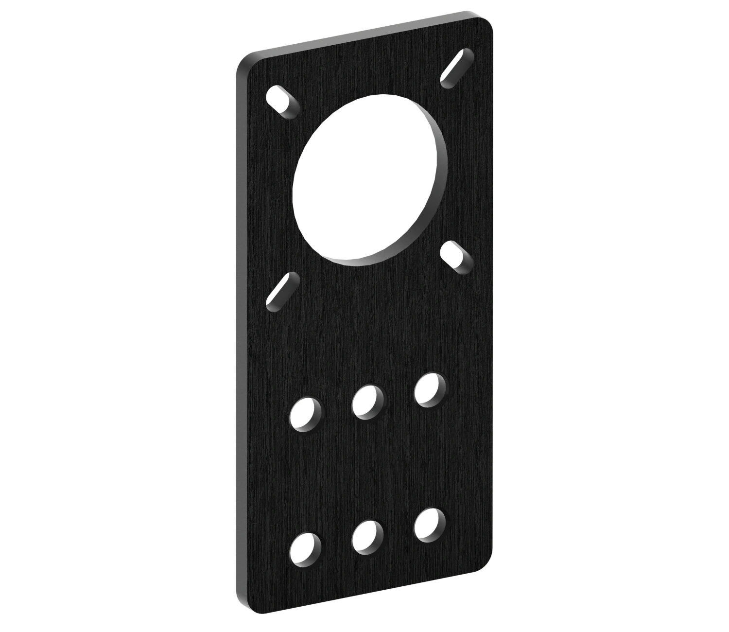 Пластина 82х40 используется в системе линейного перемещения и предназначена для крепления шагового двигателя Nema 17. Также применятся для соединения с портальной пластиной и для натяжения ремня