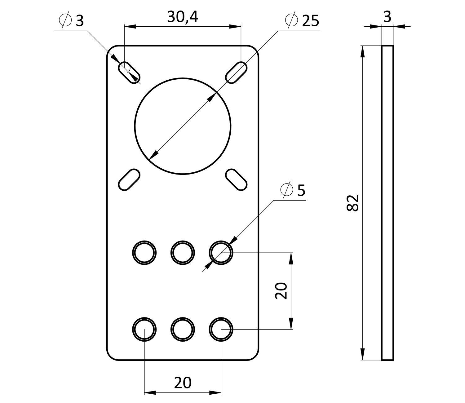 Пластина 82x40 под двигатель Nema 17Пластина 82x40 под двигатель Nema 17