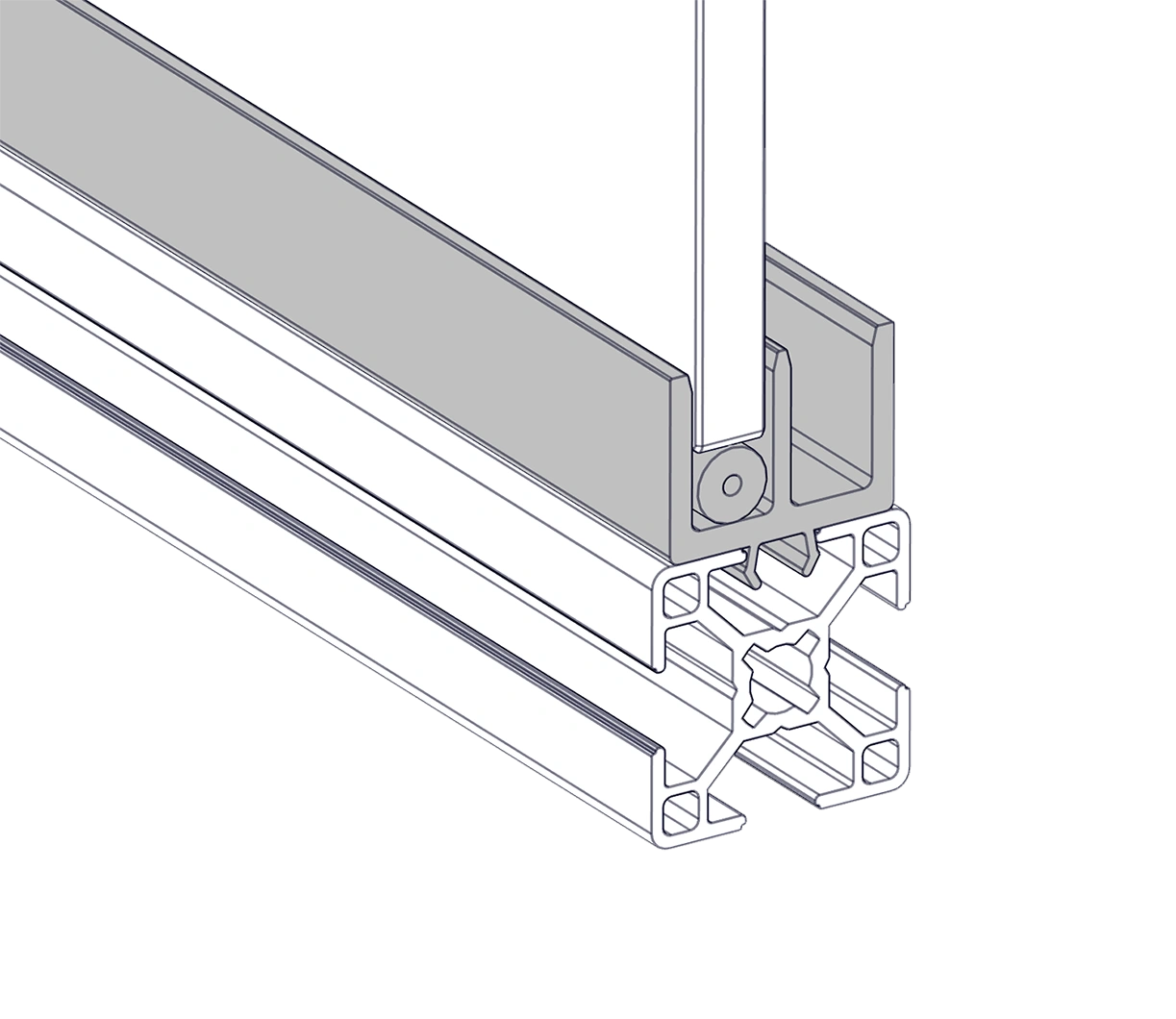 Профиль используется в изготовлении раздвижных дверей. Крепятся к профилям стоек и подходят для легких раздвижных дверей.