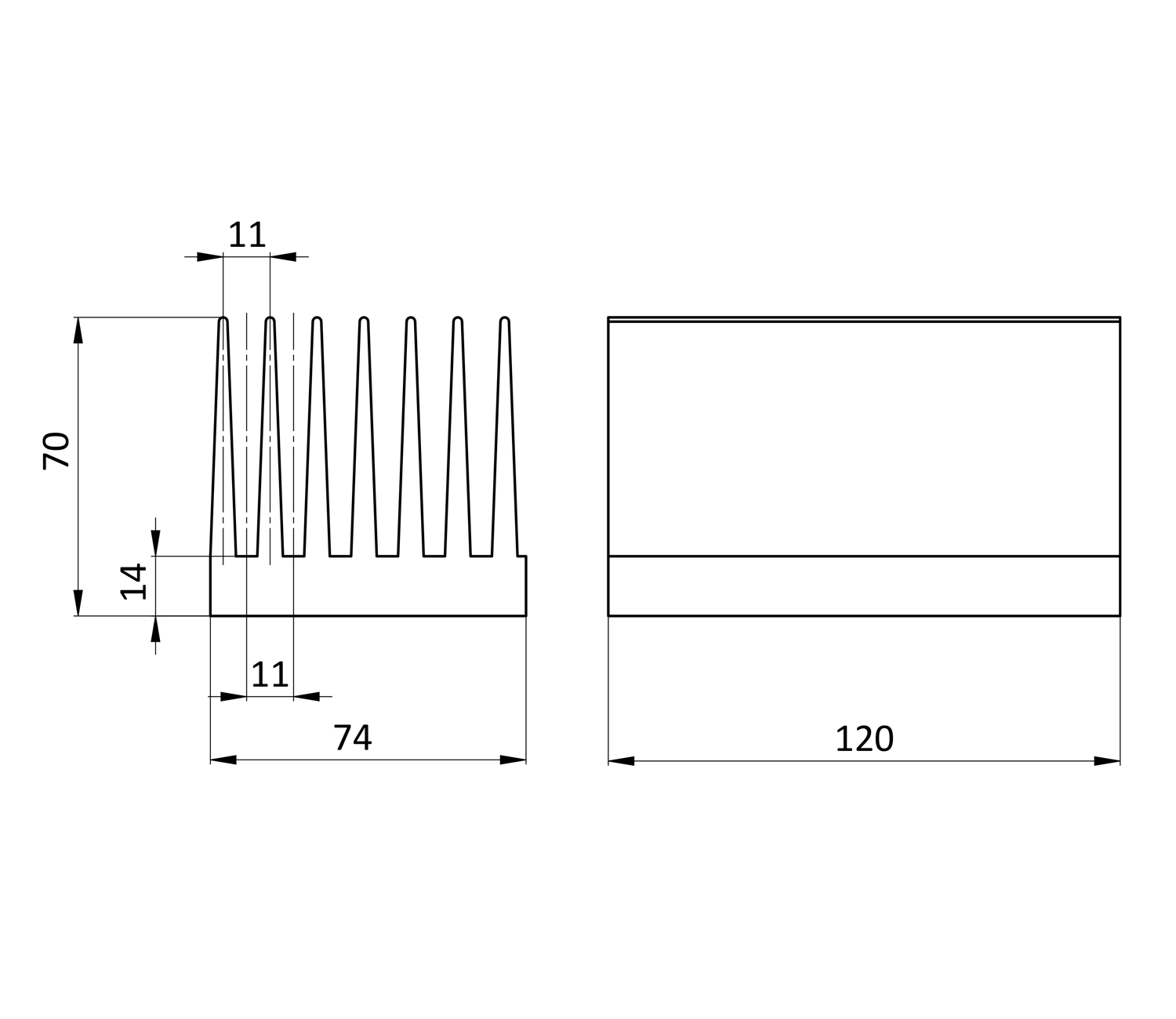 Радиаторный алюминиевый профиль 120х74х70 ммРадиаторный алюминиевый профиль 120х74х70 мм