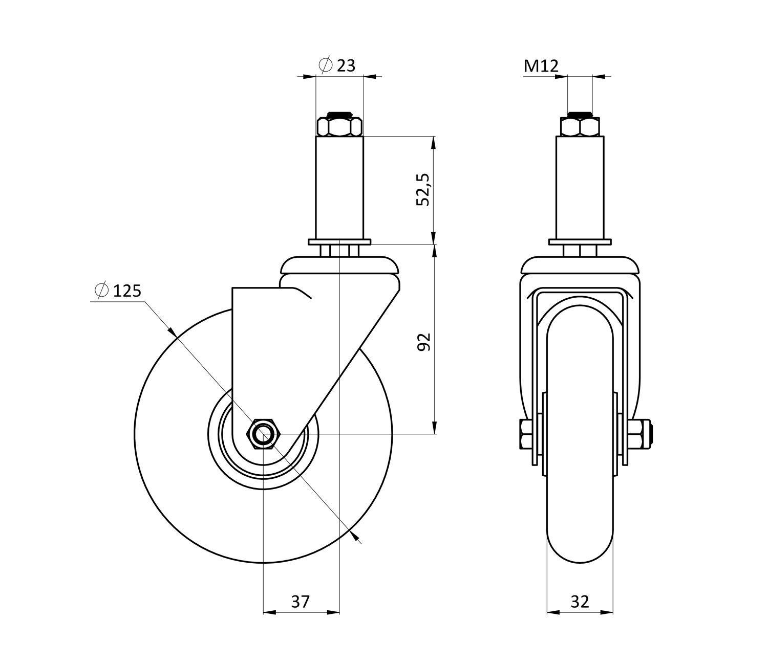 Ролик поворотный D125 втулка D23Ролик поворотный D125 втулка D23