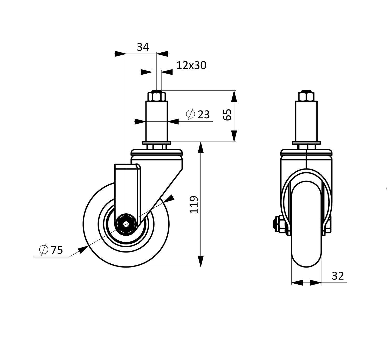 Ролик поворотный D75 втулка D23Ролик поворотный D75 втулка D23