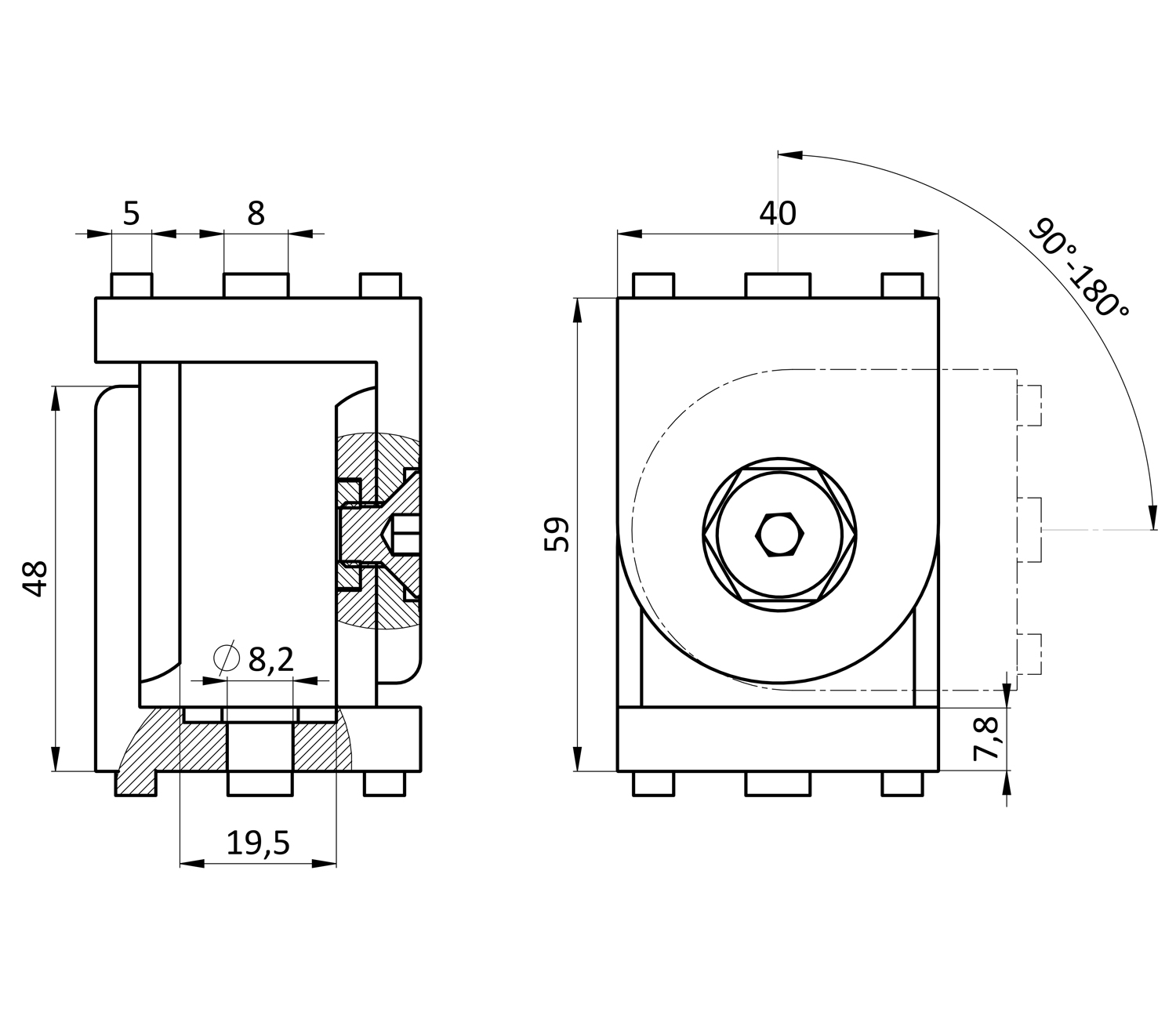 Шарнирное соединение 40х40 D8,2Шарнирное соединение 40х40 D8,2
