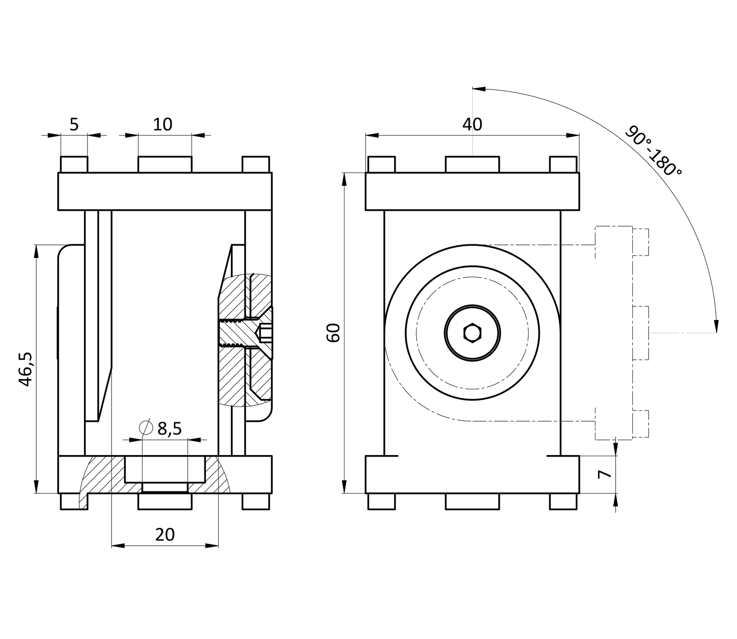 Шарнирное соединение 40х40 D8,5Шарнирное соединение 40х40 D8,5
