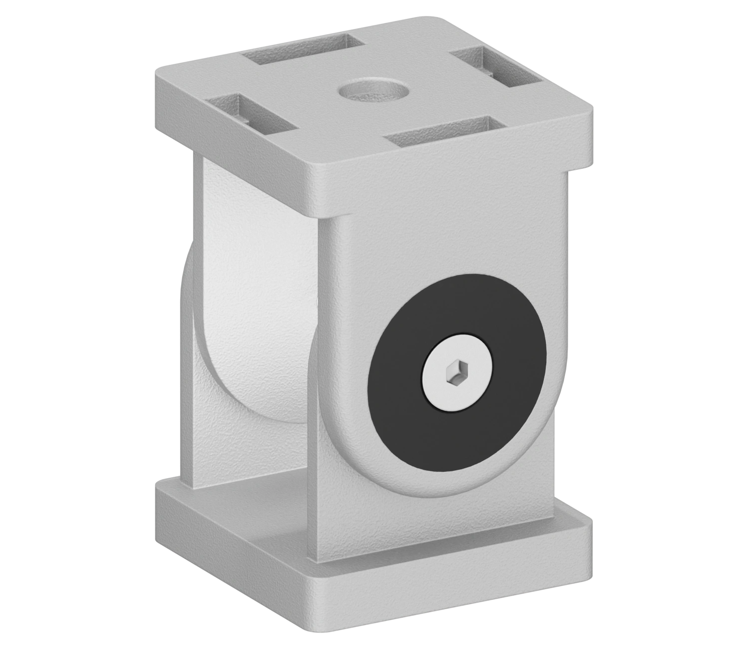 Шарнирный соединитель 40х40 предназначен для подвижного соединения алюминиевого конструкционного профиля 40 серии под углом от 90 до 180 градусов. Соединение может быть выполнено в положении торец к торцу, паз к торцу и паз к пазу.