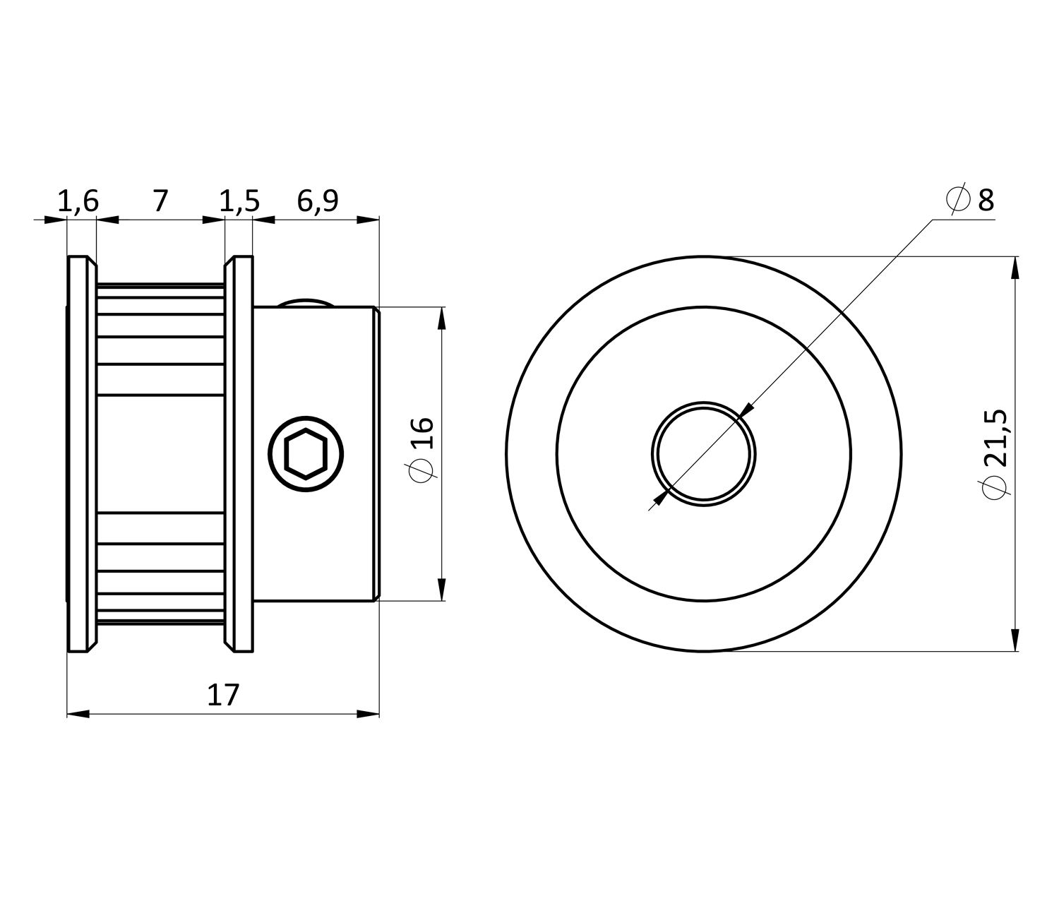 Шкив GT2 с 30 зубьями используется в системе линейного перемещения и предназначен для передачи крутящего момента от двигателя к исполнительному механизму. Фиксируется на вал диаметром 8 мм при помощи установочных винтов (входят в комплект). Подходит к ремню GT2, совместим с шаговыми двигателями Nema 17