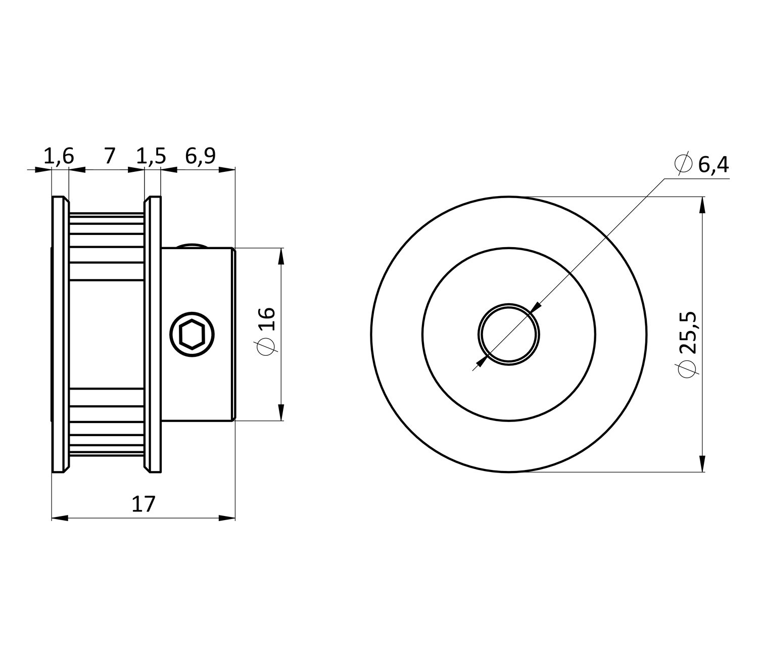 Шкив GT2 с 36 зубьями используется в системе линейного перемещения и предназначен для передачи крутящего момента от двигателя к исполнительному механизму. Фиксируется на вал диаметром 6,35 мм при помощи установочных винтов (входят в комплект). Подходит к ремню GT2, совместим с шаговыми двигателями Nema 17