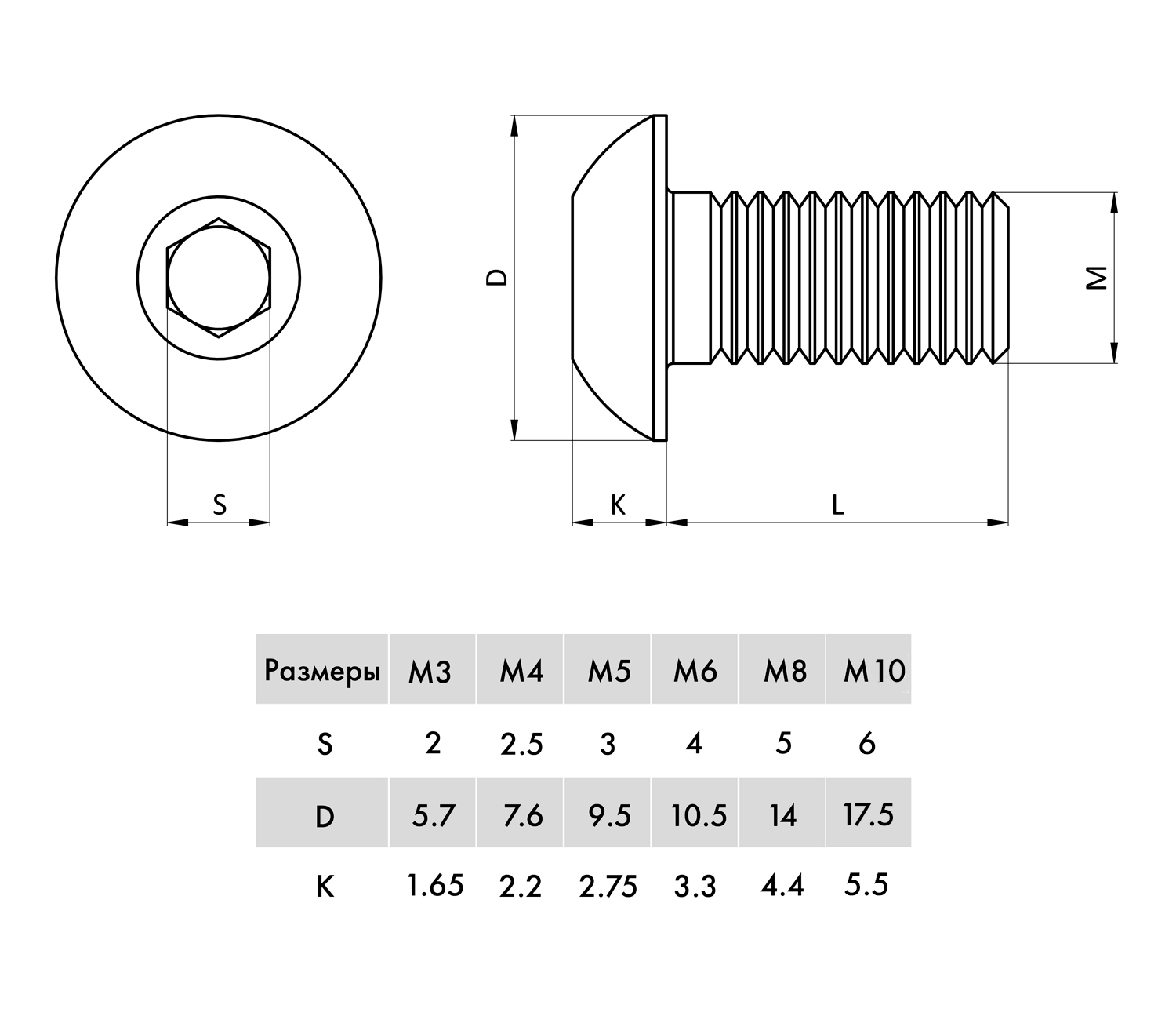 Винт с п/кр головкой и вн. шестигран. М6x50 ISO 7380 (полная резьба)