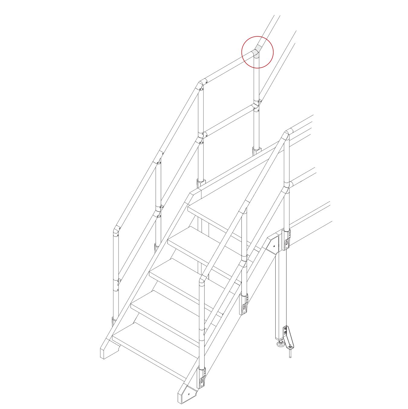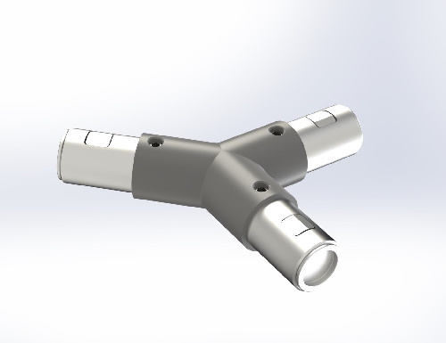 Соединяет трубный профиль с трех сторон, один угол при этом образует соединение под 135 градусов в таких элементах лестничной конструкции как поручни, ограждения.