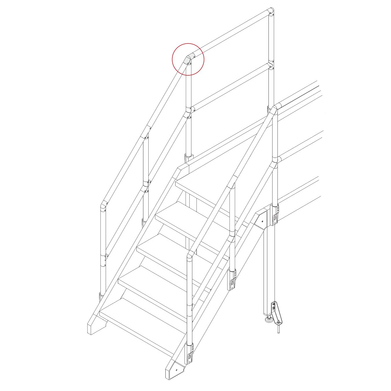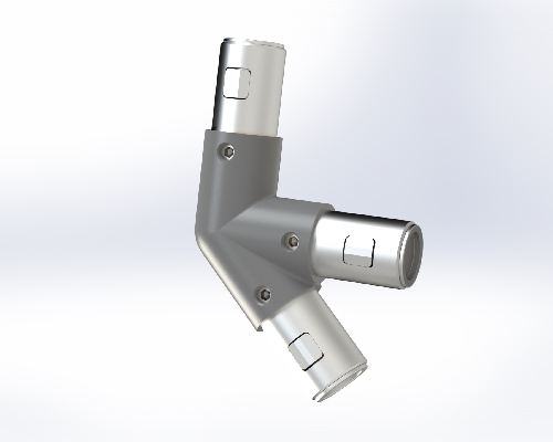 Соединяет трубный профиль с трех сторон, один угол при этом образуем соединение под 45 градусов в таких элементах лестничной конструкции как поручни, ограждения.
