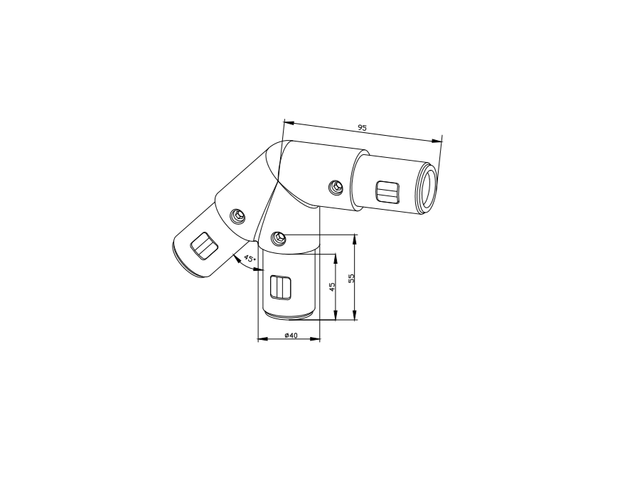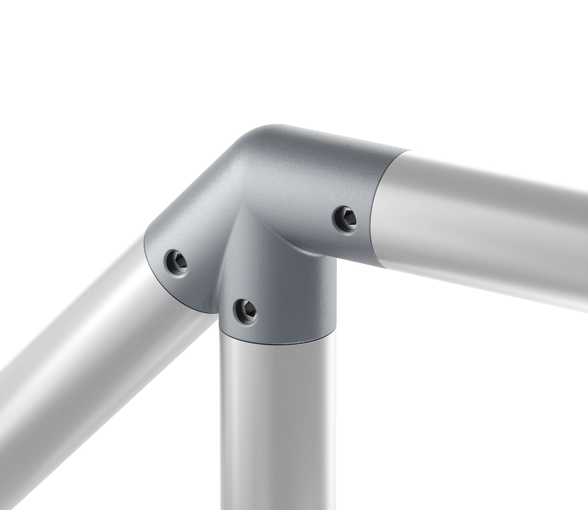L-соединитель 45° левый D40 - элемент линейки соединителей лестничной системы Алюмика, используемый совместно с алюминиевым трубным профилем D40 мм.