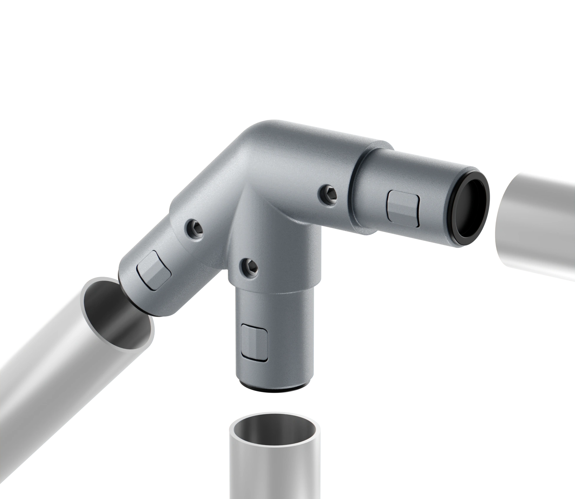 Данные соединители имеют специальную внутреннюю систему фиксации, которая фиксирует трубный профиль простым креплением - винтами без каких-либо дополнительных механических работ.