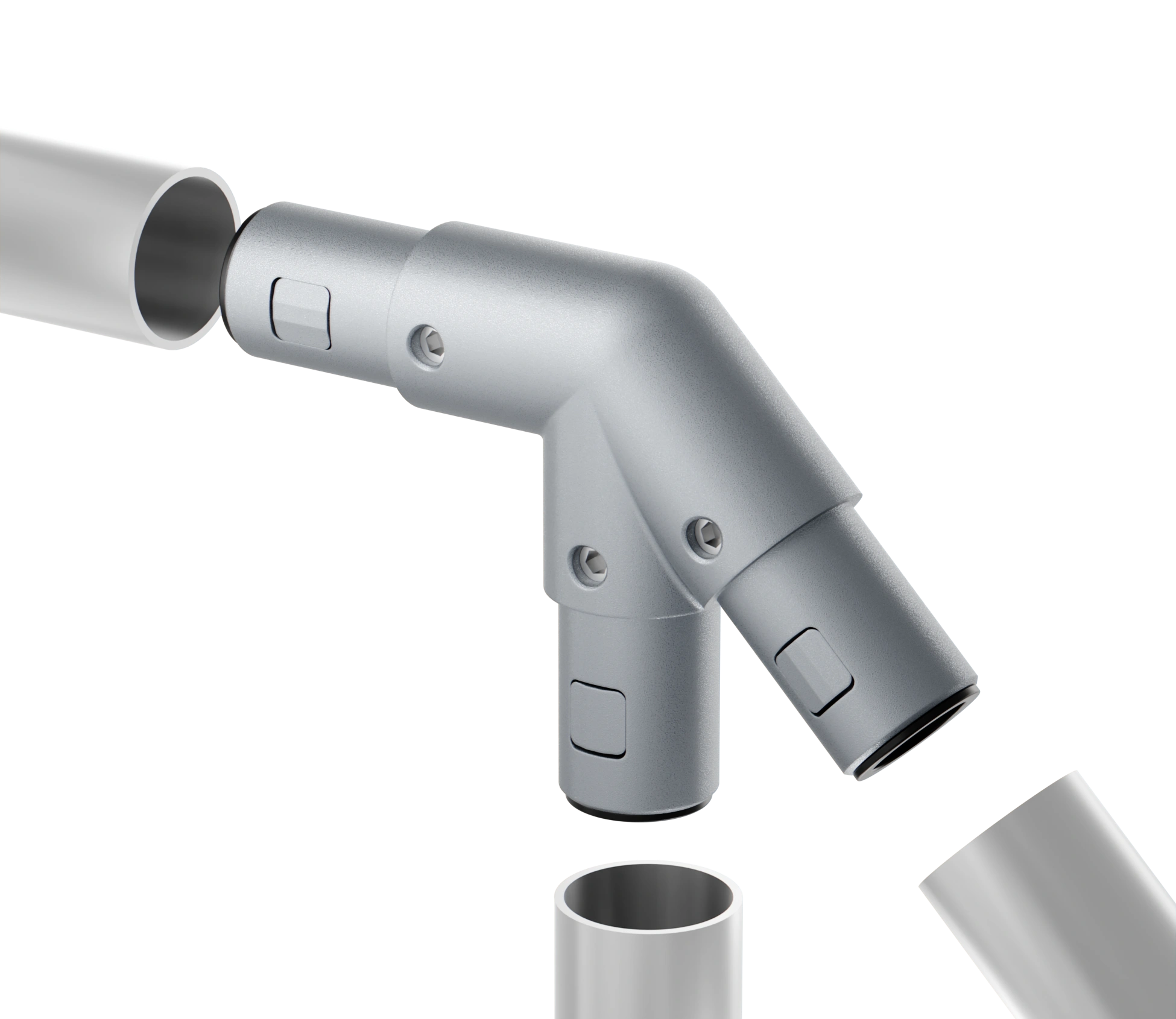 Данные соединители имеют специальную внутреннюю систему фиксации, которая фиксирует трубный профиль простым креплением - винтами без каких-либо дополнительных механических работ.