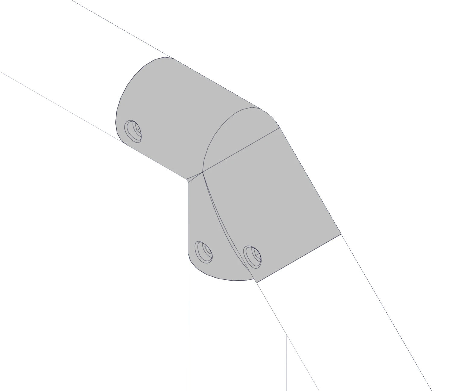 Соединяет трубный профиль с трех сторон, один угол при этом образуем соединение под 45 градусов в таких элементах лестничной конструкции как поручни, ограждения.