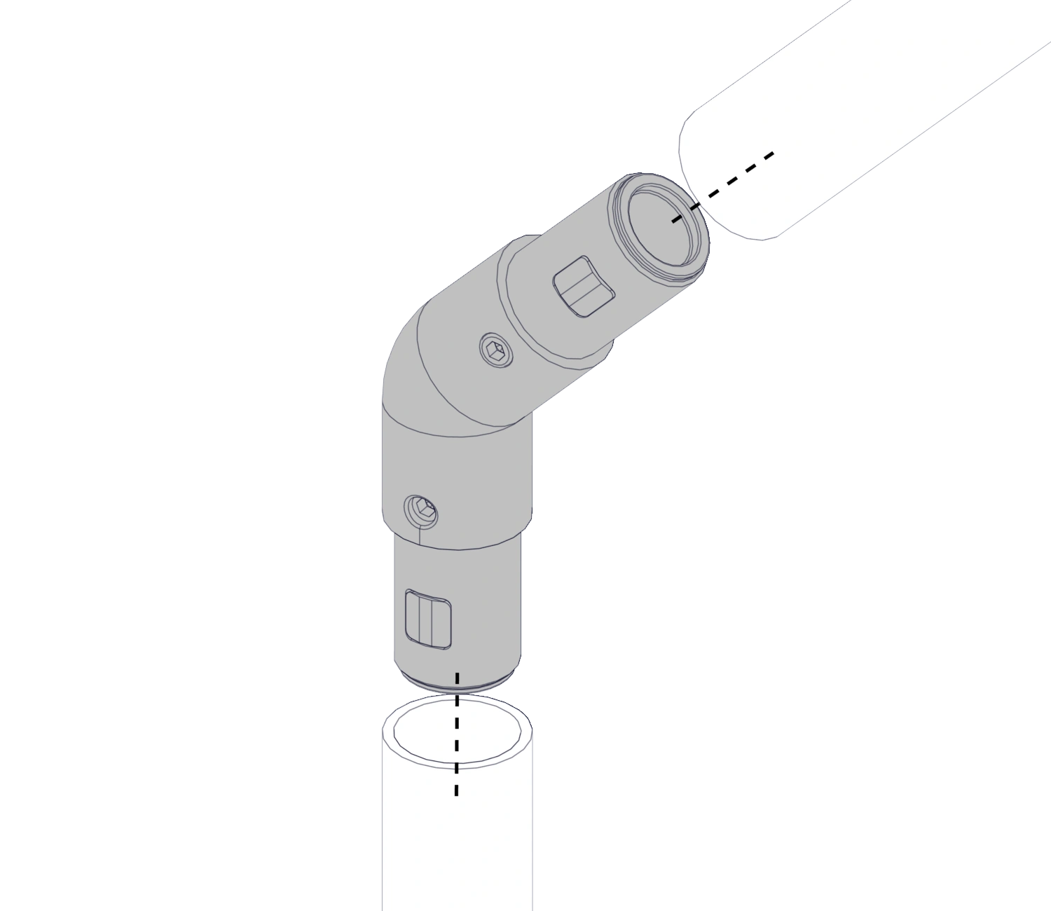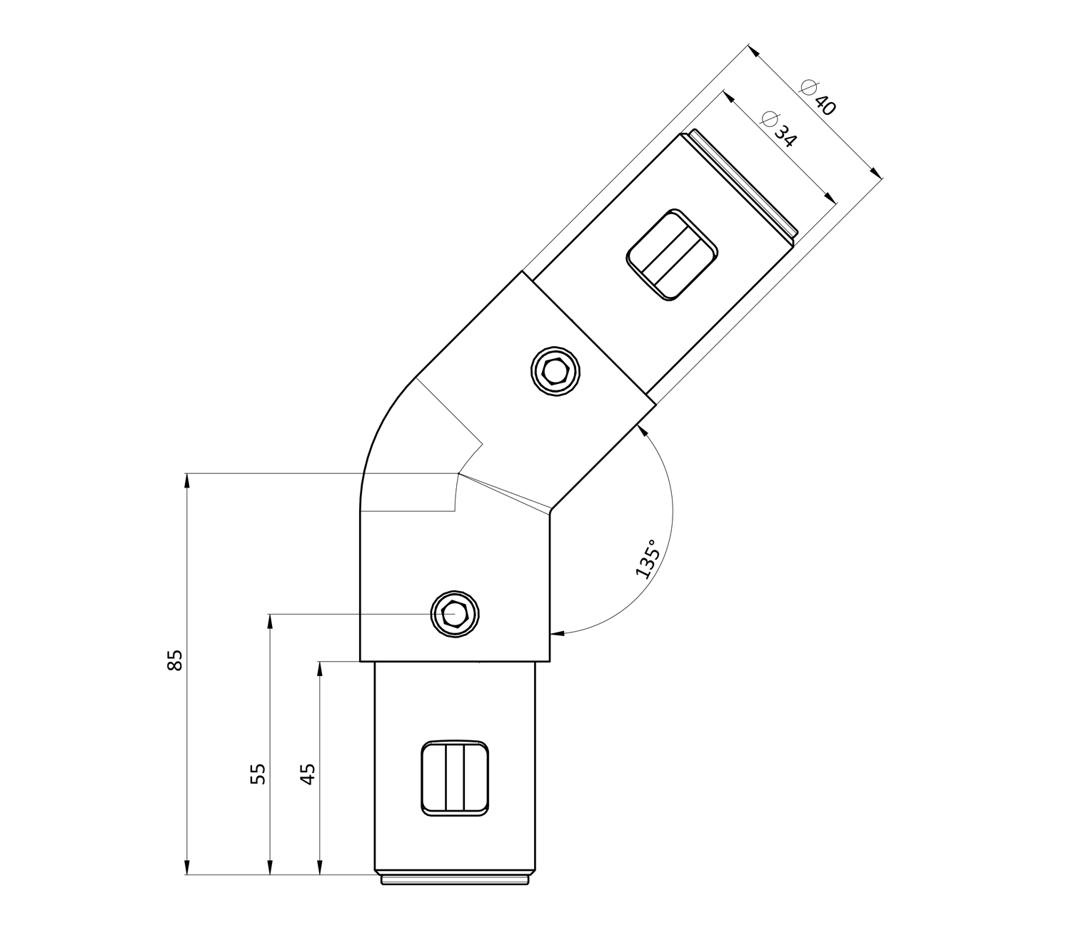 Соединяет трубный профиль с двух сторон под углом 135 градусов.