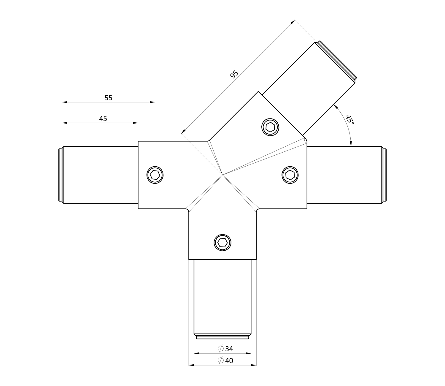 T-соединитель 45 градусов правый D40T-соединитель 45 градусов правый D40