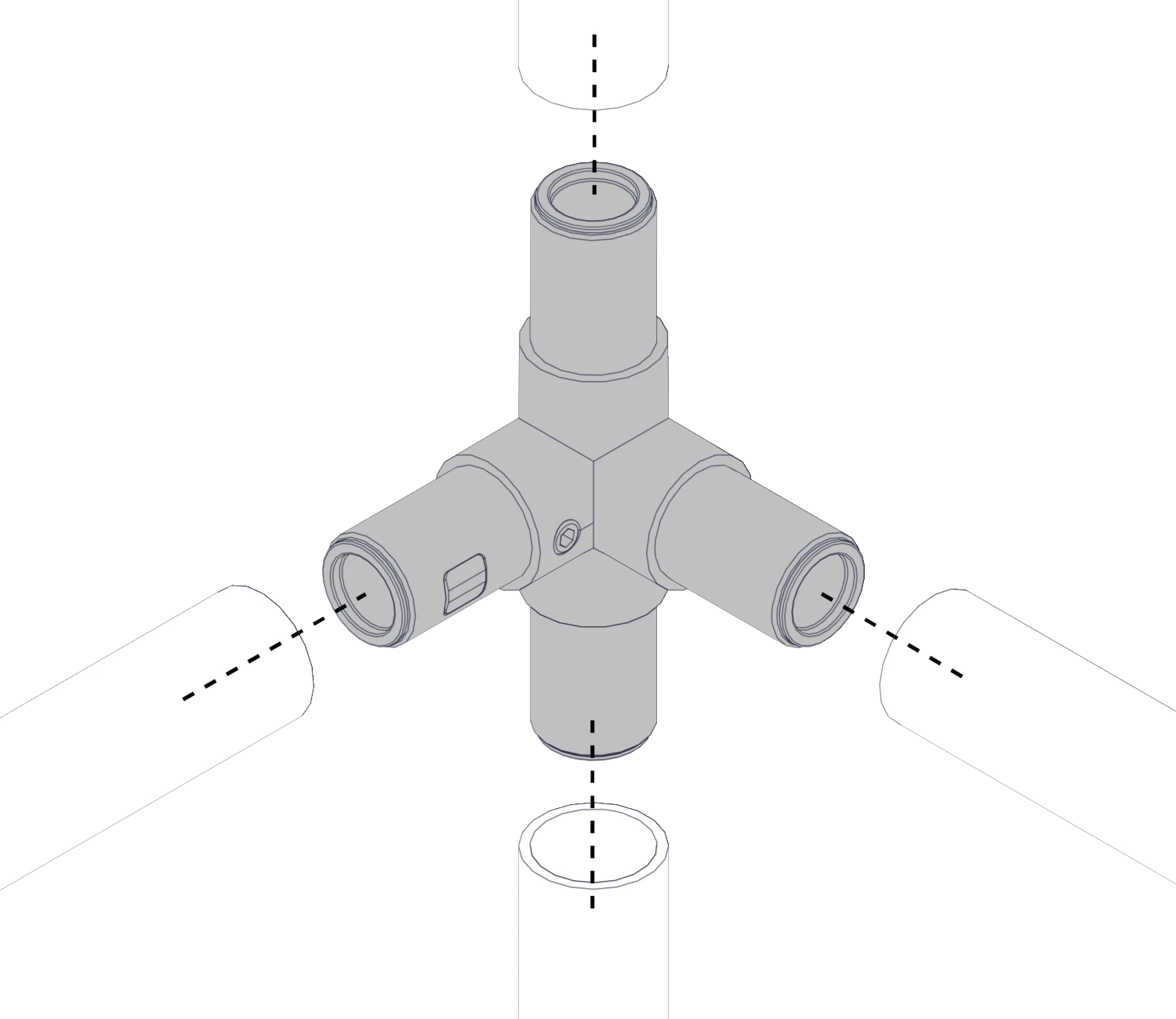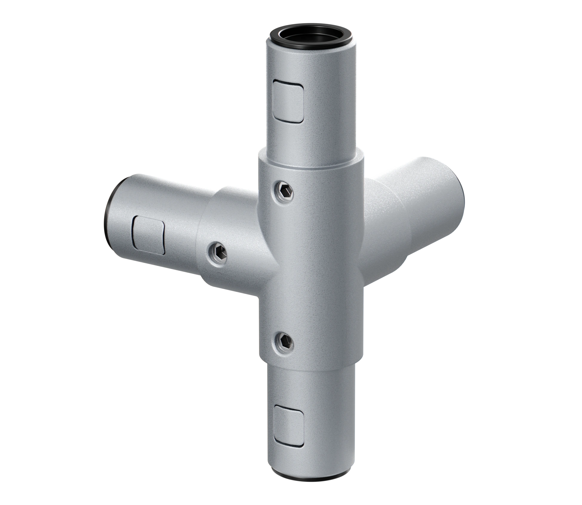 Данные соединители имеют специальную внутреннюю систему фиксации, которая фиксирует трубный профиль простым креплением - винтами без каких-либо дополнительных механических работ.